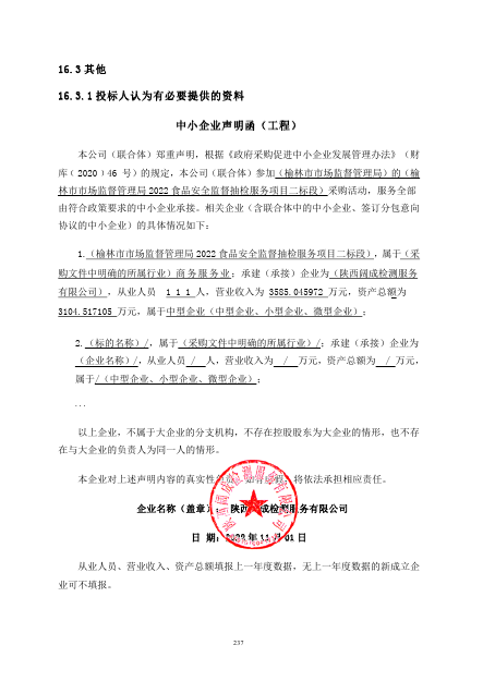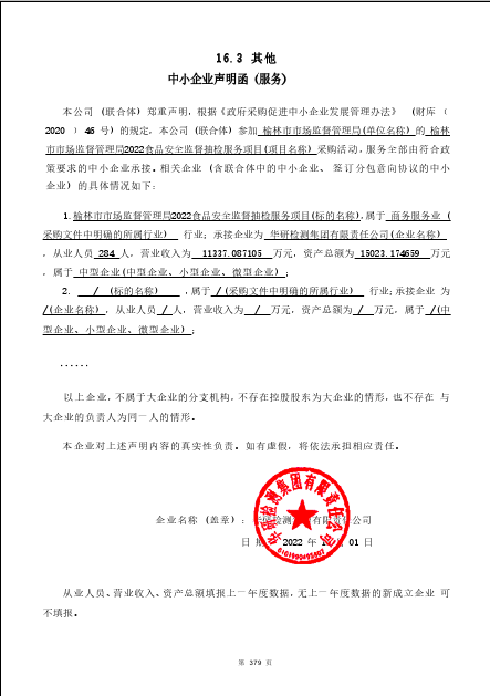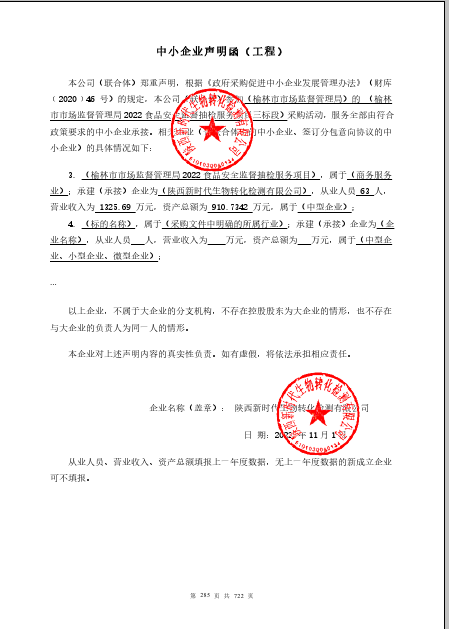 2022年11月3日榆林市市场监督管理局2022食品安全监督抽检服务项目中标(成交)结果公告 |