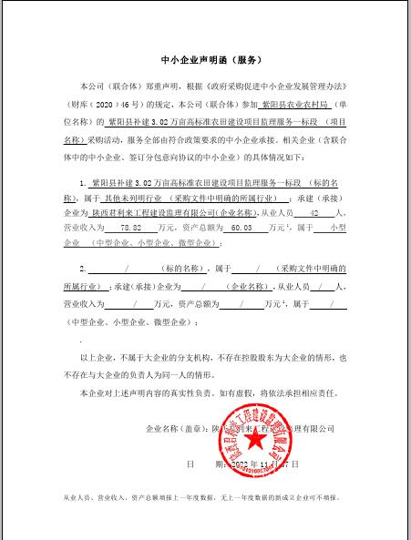 合同包1(紫阳县补建3.02万亩高标准农田建设项目监理服务一标段): 服务类(陕西君利来工程建设监理有限公司)