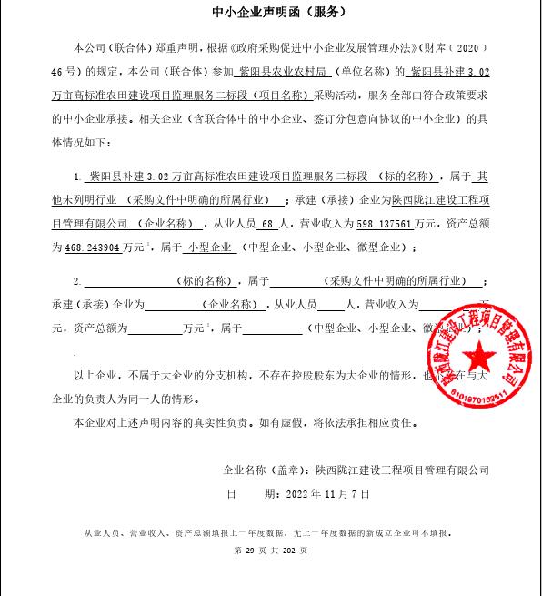 合同包2(紫阳县补建3.02万亩高标准农田建设项目监理服务二标段): 服务类(陕西陇江建设工程项目管理有限公司)