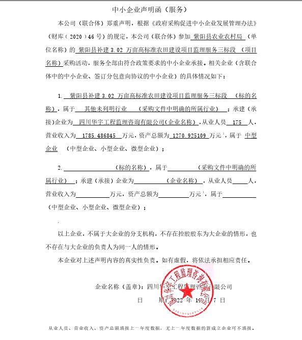 合同包3(紫阳县补建3.02万亩高标准农田建设项目监理服务三标段): 服务类(四川华宇工程监理咨询有限公司)