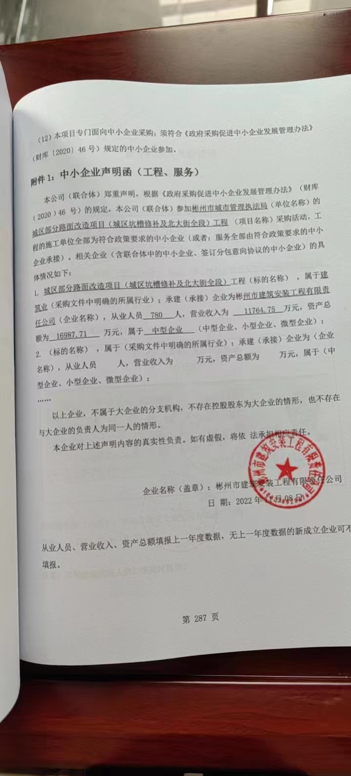 自本公告发布之日起1个工作日。 八、其他补充事宜/ 九、凡对本次公告内容提出询问,请按以下方式联系。 1.采购人信息名称:彬州市城市管理执法局 地址:彬州市北大街马王庙巷7号 联系方式:029-34927572 2.采购代理机构信息名称:陕西友邦项目管理有限公司 地址:沣西新城天兴大厦16007室 联系方式:029-81631610/15529629622 3.项目联系方式项目联系人:刘工 电话:029-81631610/15529629622 陕西友邦项目管理有限公司 2022年11月09日 相关附件: 中小企业声明函.jpg 磋商文件--城区部分路面改造项目(城区坑槽修补及北大街全段)工程.docx 彬州市城市管理执法局城区部分路面改造项目(城区坑槽修补及北大街全段)工程中标(成交)明细.pdf 十一、其他事项: ------------------------------------招标信息结束---------------------------- 标签: 中标 工程 城区 路面 城市管理 北大街 改造项目 上一篇: 2022年11月9日保定市城市管理综合行政执法局市政工程项目服务采购项目公开招标中标公告 最新5000条招标信息列表: 滚动招标 |