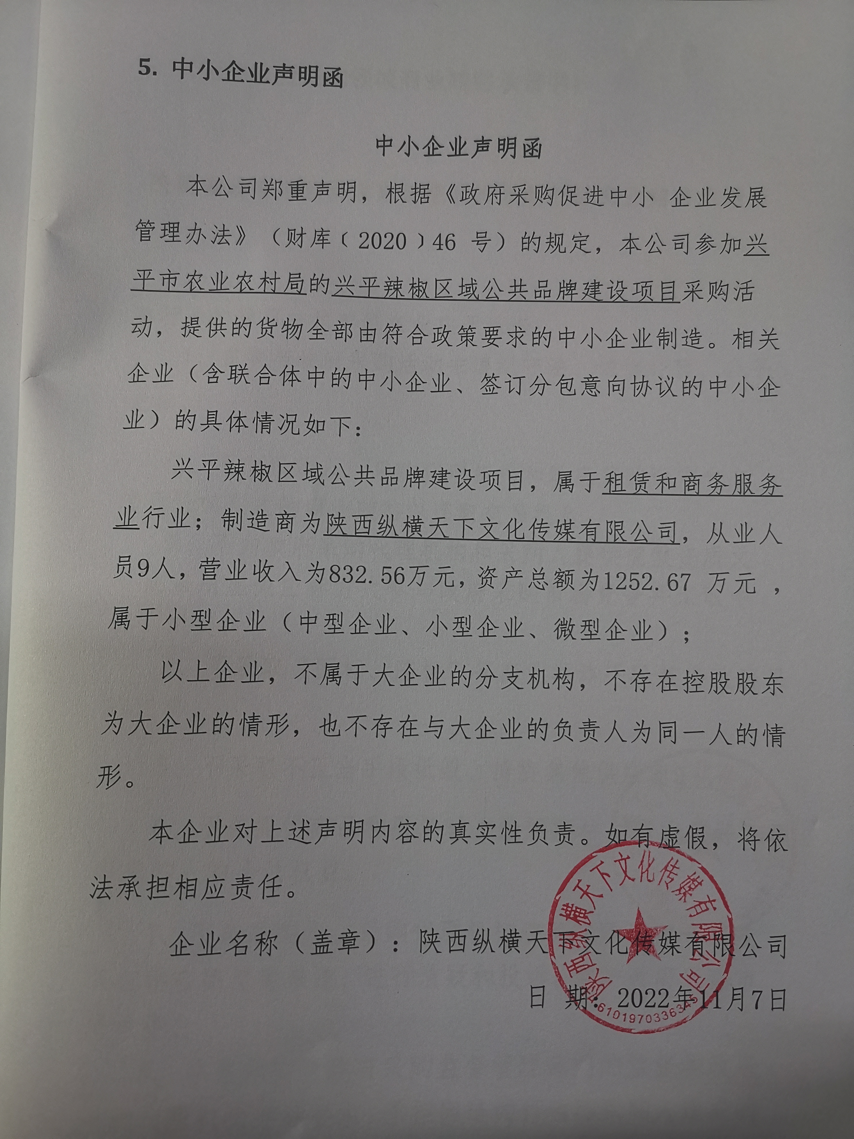 2022年11月11日兴平辣椒区域公共品牌建设项目中标(成交)结果公告 |