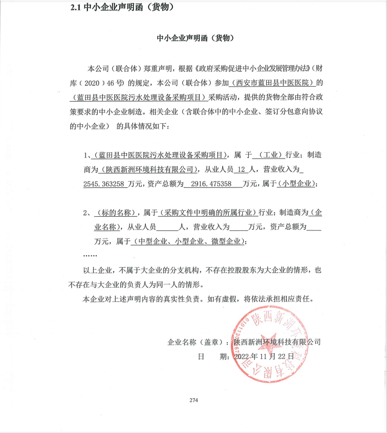 2022年11月24日西安市蓝田县中医医院蓝田县中医医院污水处理设备采购项目中标(成交)结果公告 |