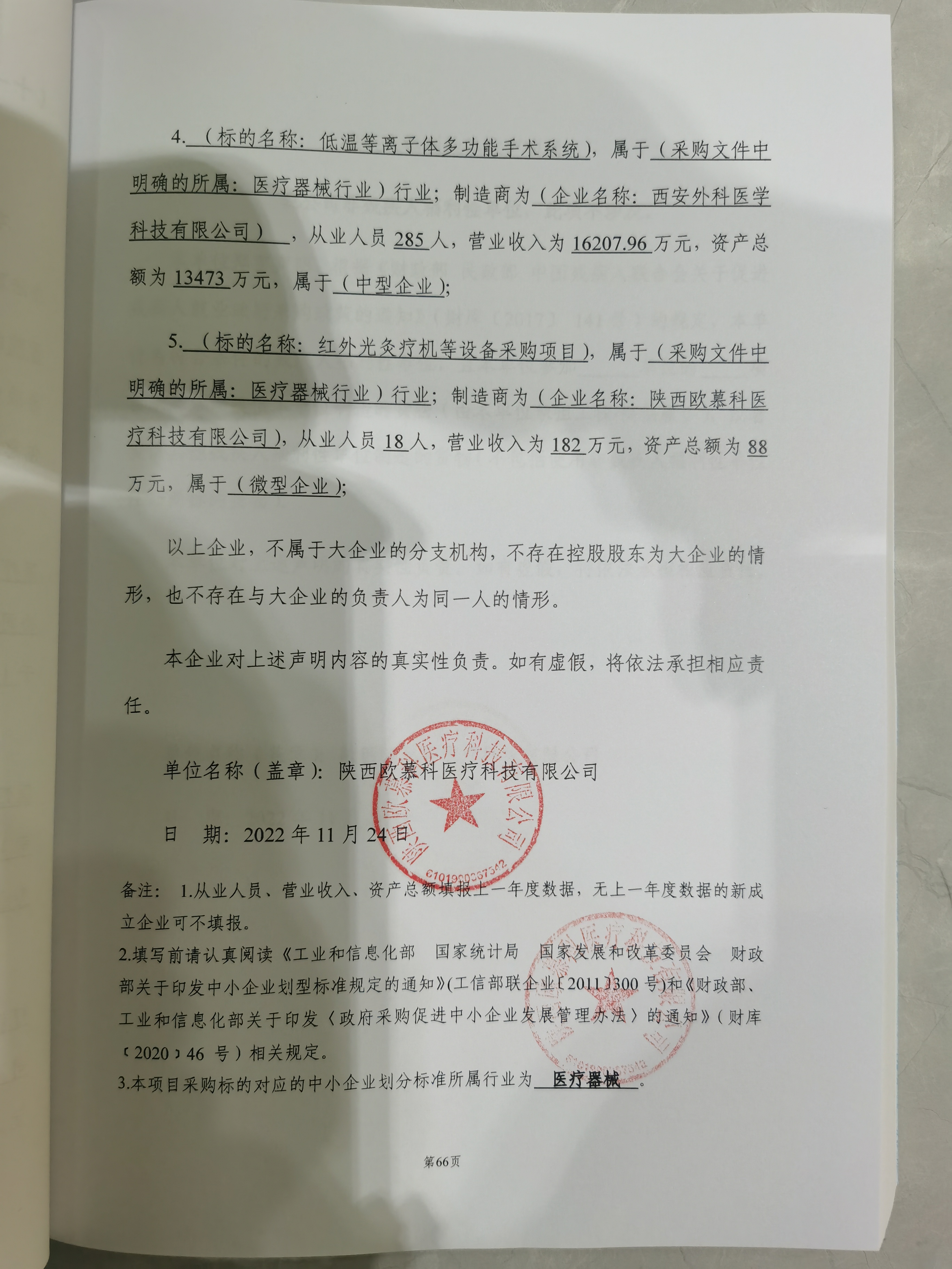 合同包1(红外光灸疗机等设备采购项目): 货物类(陕西欧慕科医疗科技有限公司)