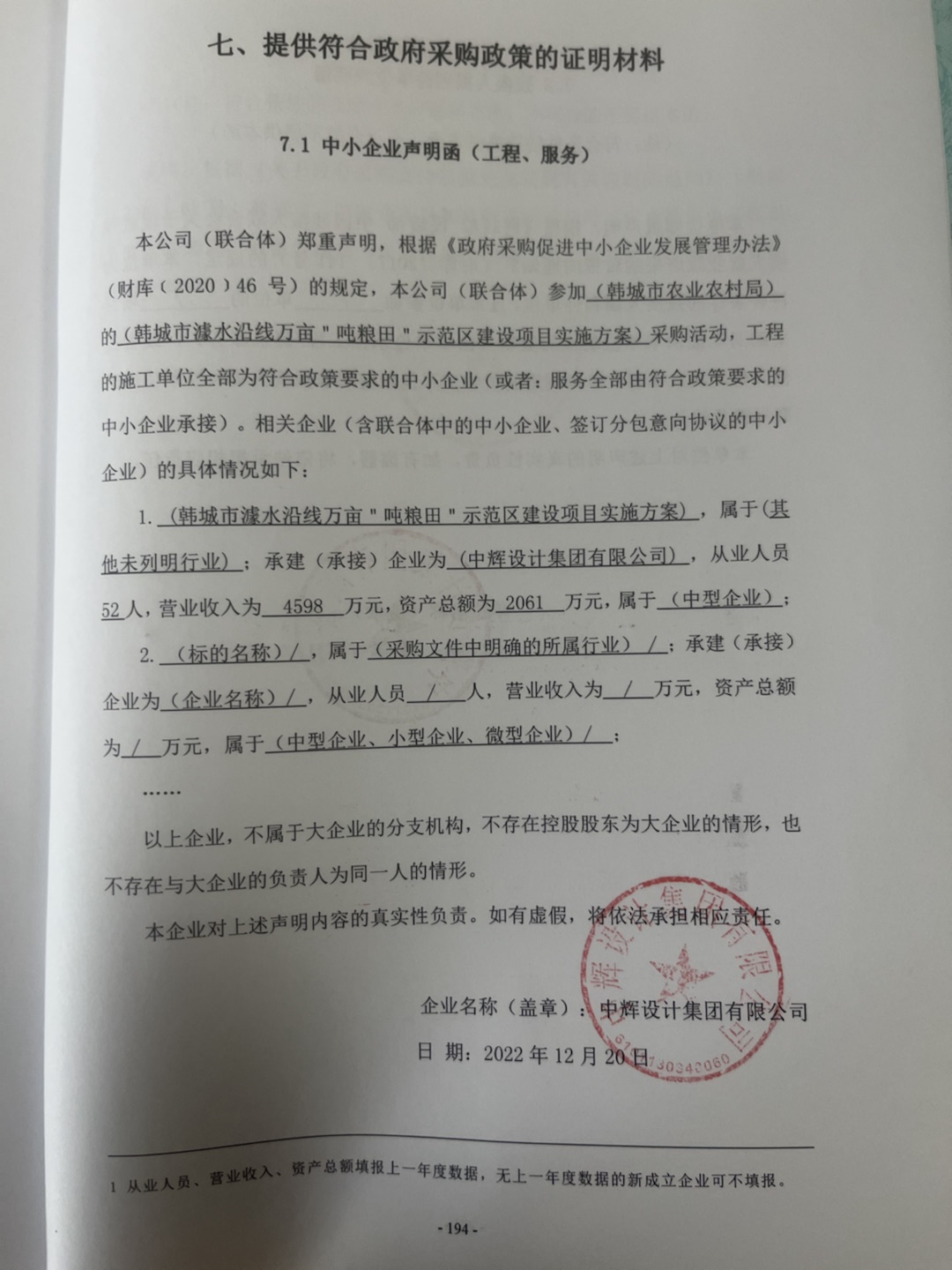 自本公告发布之日起1个工作日。 八、其他补充事宜无 九、凡对本次公告内容提出询问,请按以下方式联系。 1.采购人信息名称:韩城市农业农村局 地址:韩城市太史大街政府一号楼 联系方式:13759692052 2.采购代理机构信息名称:华泰工程管理有限公司 地址:陕西省西安市经开区凤城五路世融嘉轩5号楼27层 联系方式:029-86250354 3.项目联系方式项目联系人:杨工、张工 电话:029-86250354 华泰工程管理有限公司 2022年12月21日 相关附件: 中小企业声明.jpg 竞争性磋商文件.pdf 韩城市农业农村局韩城市澽水沿线万亩"吨粮田"示范区建设项目实施方案中标(成交)明细.pdf 报价一览表.pdf 十一、其他事项: ------------------------------------招标信息结束---------------------------- 标签: 中标 韩城市 示范区 沿线 实施方案 建设项目 农村 上一篇: 2022年12月21日山东农业大学2022年农业大数据研究中心科研设备采购项目(科技创新一期SH)中标(成交)公告 最新5000条招标信息列表: 滚动招标 |