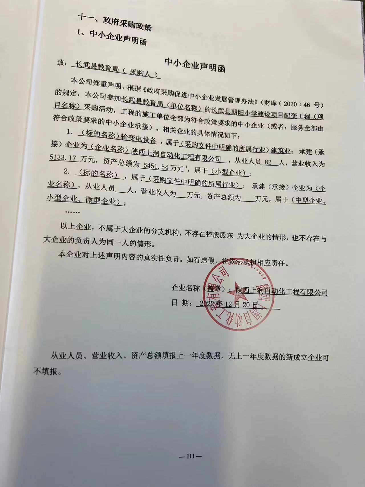 合同包1(长武县朝阳小学建设项目配变工程): 货物类(陕西上润自动化工程有限公司)
