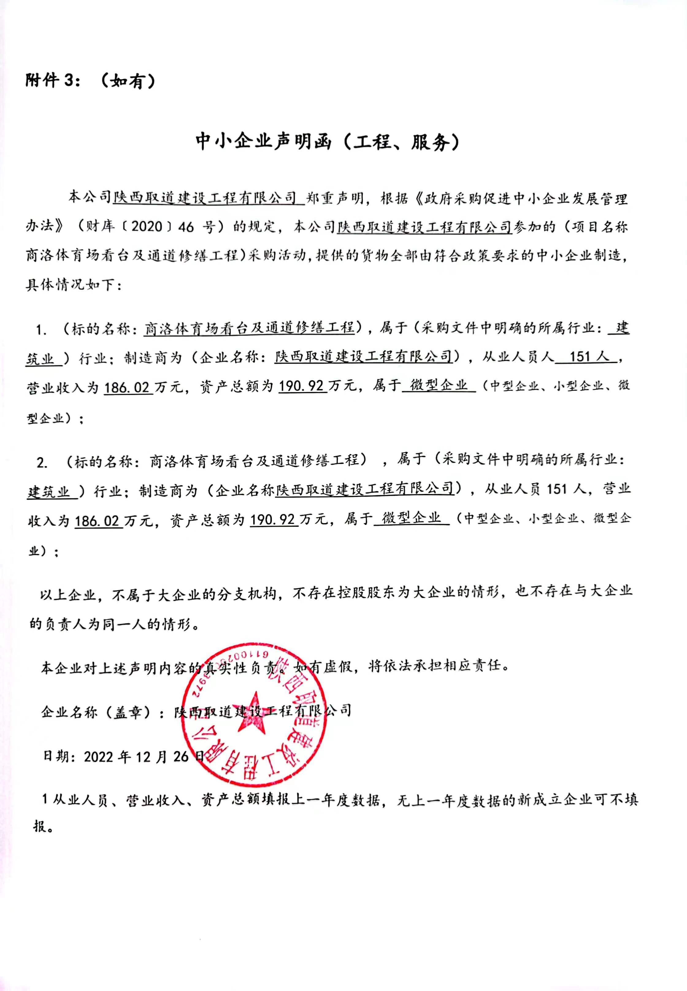 合同包1(商洛体育场看台及通道修缮工程): 工程类(陕西取道建设工程有限公司)