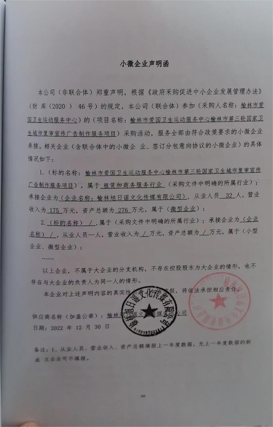 2023年1月3日榆林市爱国卫生运动服务中心榆林市第三轮国家卫生城市复审宣传广告制作服务项目中标(成交)结果公告 |