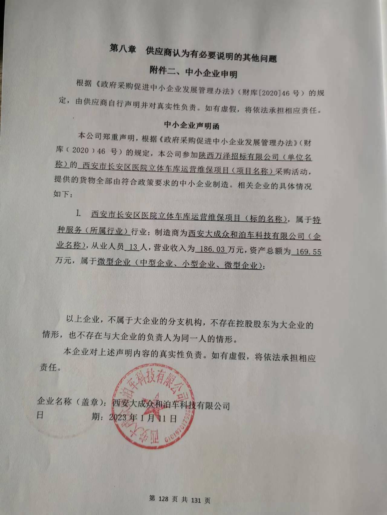 2023年1月12日西安市长安区医院立体车库运营维保项目中标(成交)结果公告 |