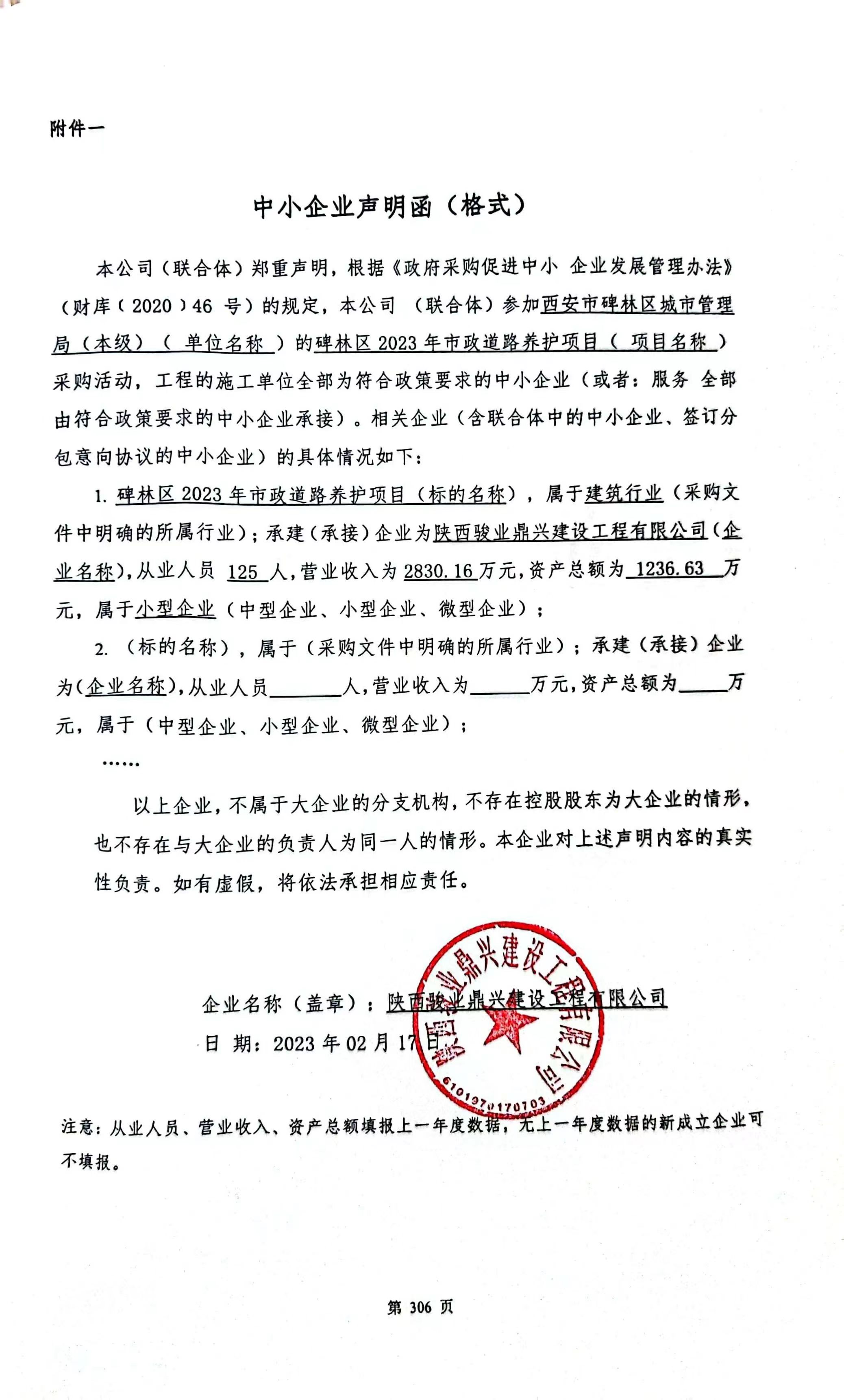 ----------------------------------招标机构发布信息原文:----------------------- 中小企业声明函.jpg 西安市碑林区城市管理局(本级)碑林区2023年市政道路养护项目中标(成交)明细.pdf 十一、其他事项: ------------------------------------招标信息结束---------------------------- 标签: 中标 项目 碑林 西安市 管理局 市政道路 公告 上一篇: 2023年2月20日福州市自来水有限公司各水厂阀门采购项目中标公告 最新5000条招标信息列表: 滚动招标 |