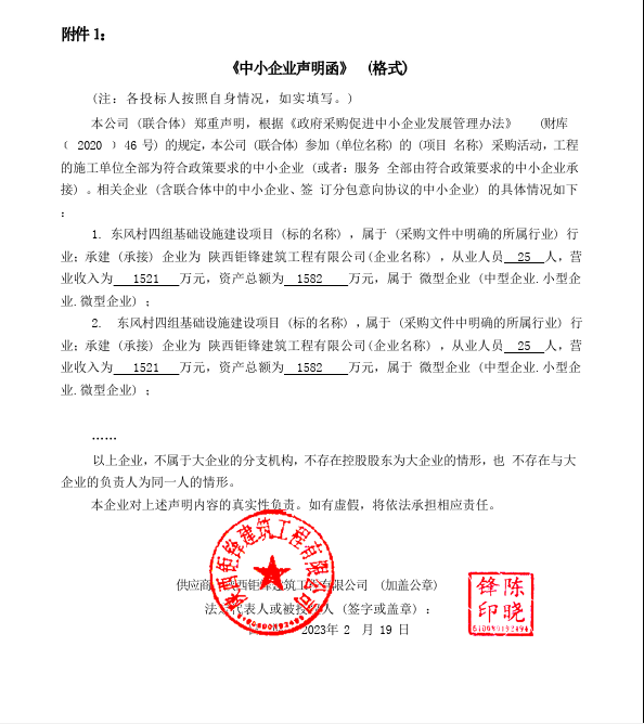 2023年2月21日镇坪县钟宝镇人民政府(本级)东风村四组基础设施建设项目中标(成交)结果公告 |