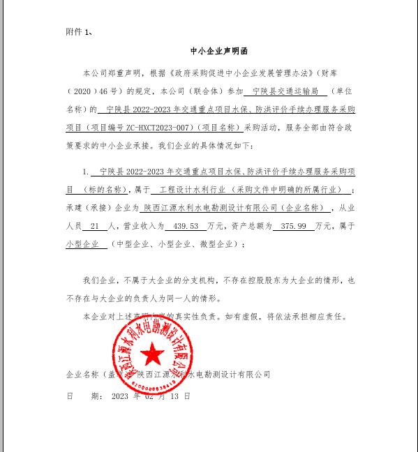 2023年2月22日宁陕县2022-2023年交通重点项目水保、防洪评价手续办理服务采购项目中标(成交)结果公告 |