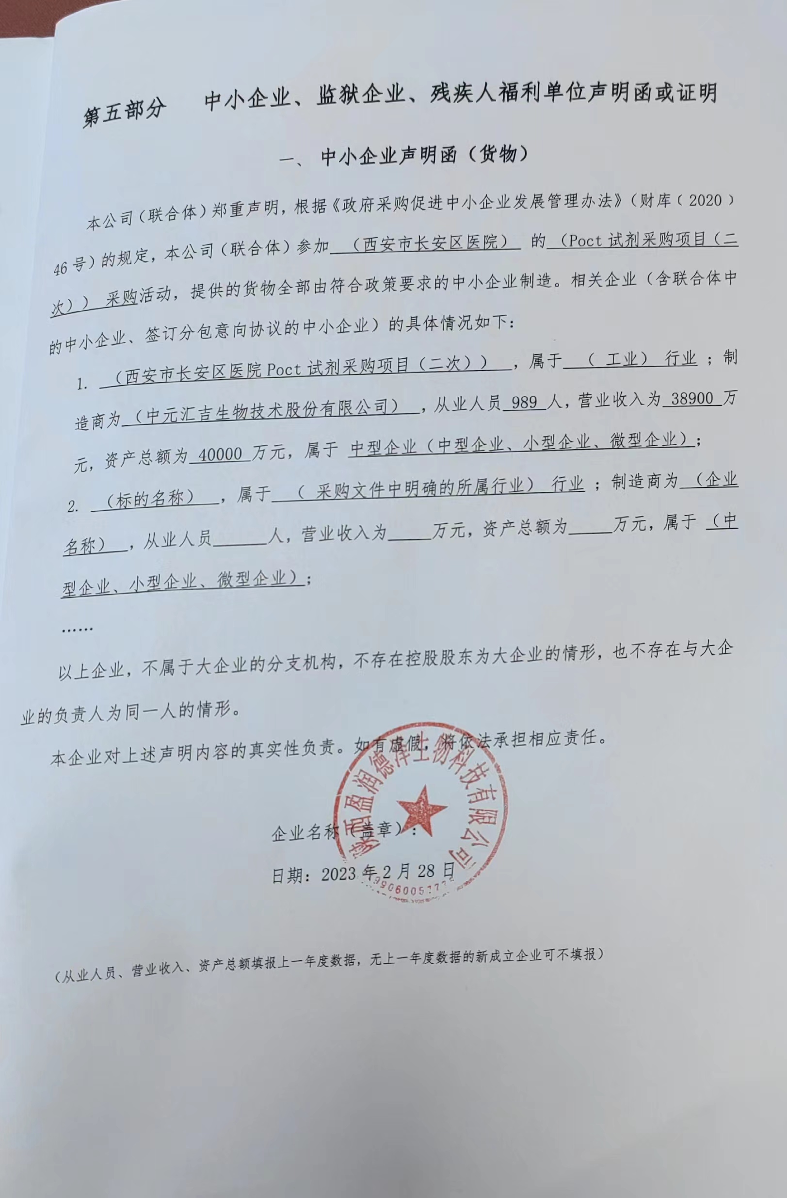 ----------------------------------招标机构发布信息原文:----------------------- 中小企业声明函.jpg 二次谈判文件-Poct.docx 西安市长安区医院Poct试剂采购项目(二次)中标(成交)明细.pdf 最终报价表.docx 十一、其他事项: ------------------------------------招标信息结束---------------------------- 标签: 采购 长安 项目 医院 中标 西安市 试剂 上一篇: 2023年3月8日临沂市兰山区住房和城乡建设局购买小型污水处理设备第三方检测服务项目中标公示 最新5000条招标信息列表: 滚动招标 |