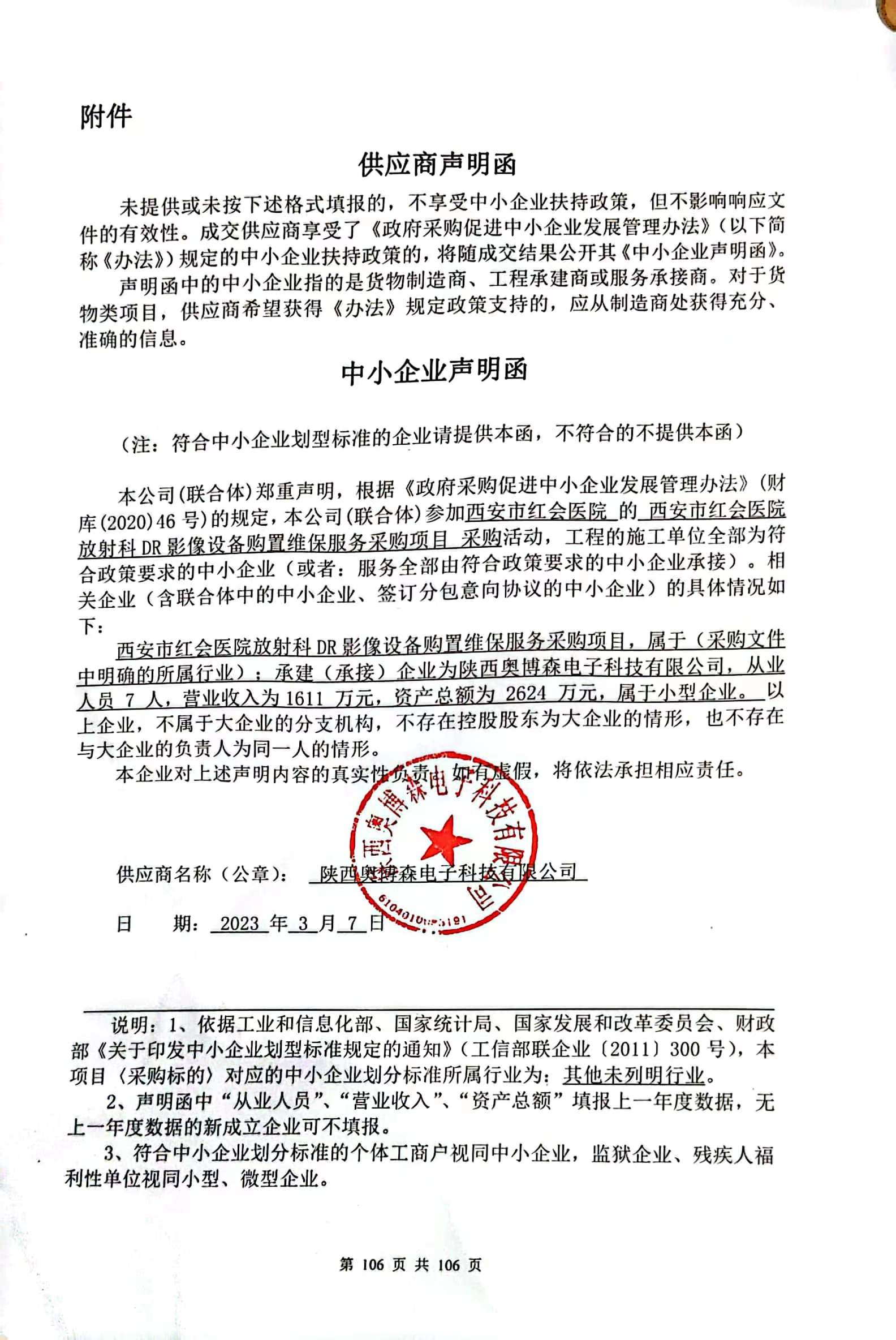 ----------------------------------招标机构发布信息原文:----------------------- 中小企业声明函.jpg 西安市红会医院放射科DR影像设备购置维保服务采购项目中标(成交)明细.pdf 西安市红会医院放射科DR影像设备购置维保服务采购项目磋商文件终稿.docx 十一、其他事项: ------------------------------------招标信息结束---------------------------- 标签: 项目 医院 采购 中标 西安市 放射科 影像 上一篇: 2023年3月10日迁西县自然资源和规划局土地级别与基准地价更新工作项目竞争性磋商成交公告 最新5000条招标信息列表: 滚动招标 |