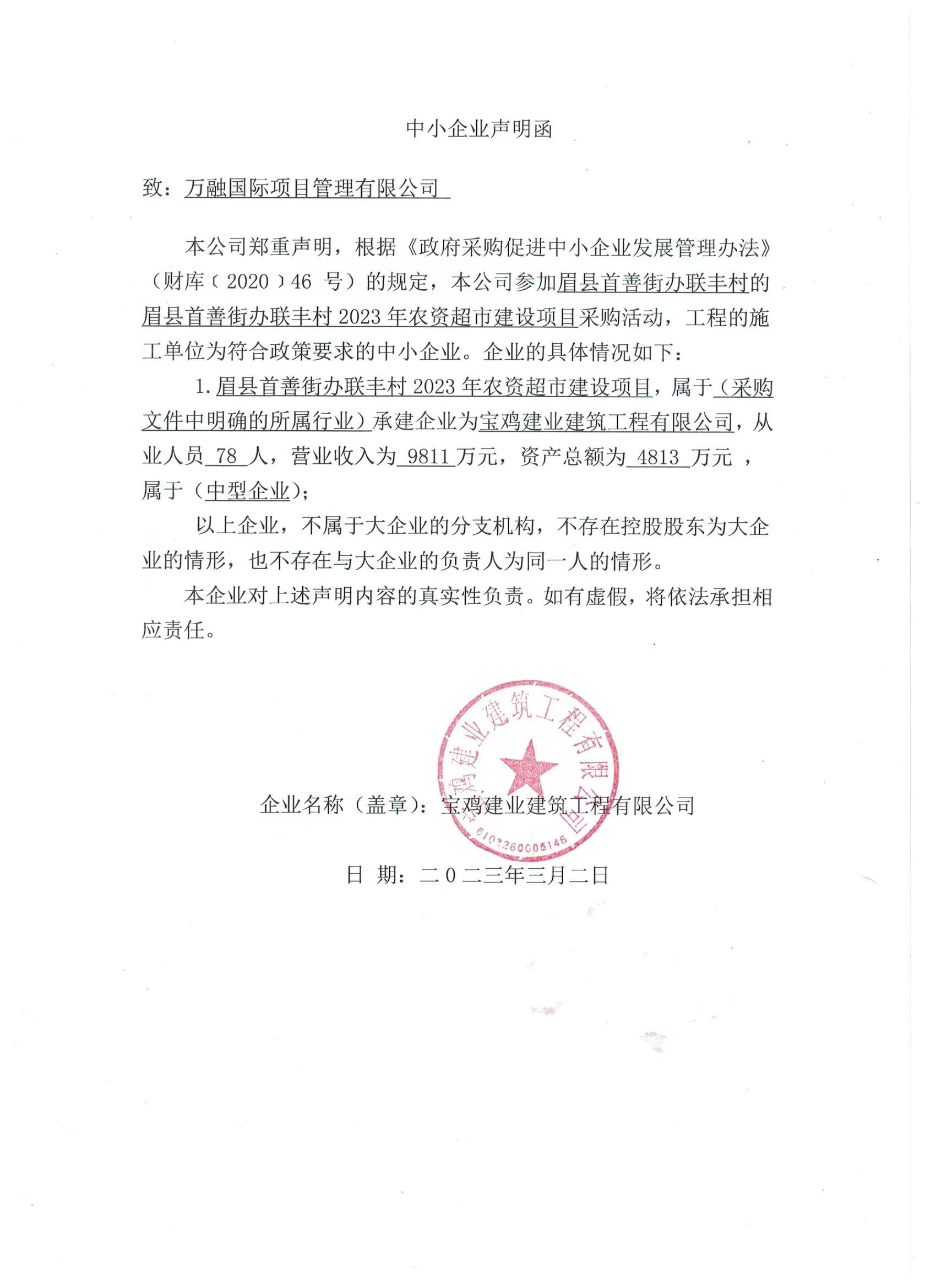 2023年3月15日眉县首善街办联丰村2023年农资超市建设项目中标(成交)结果公告 |