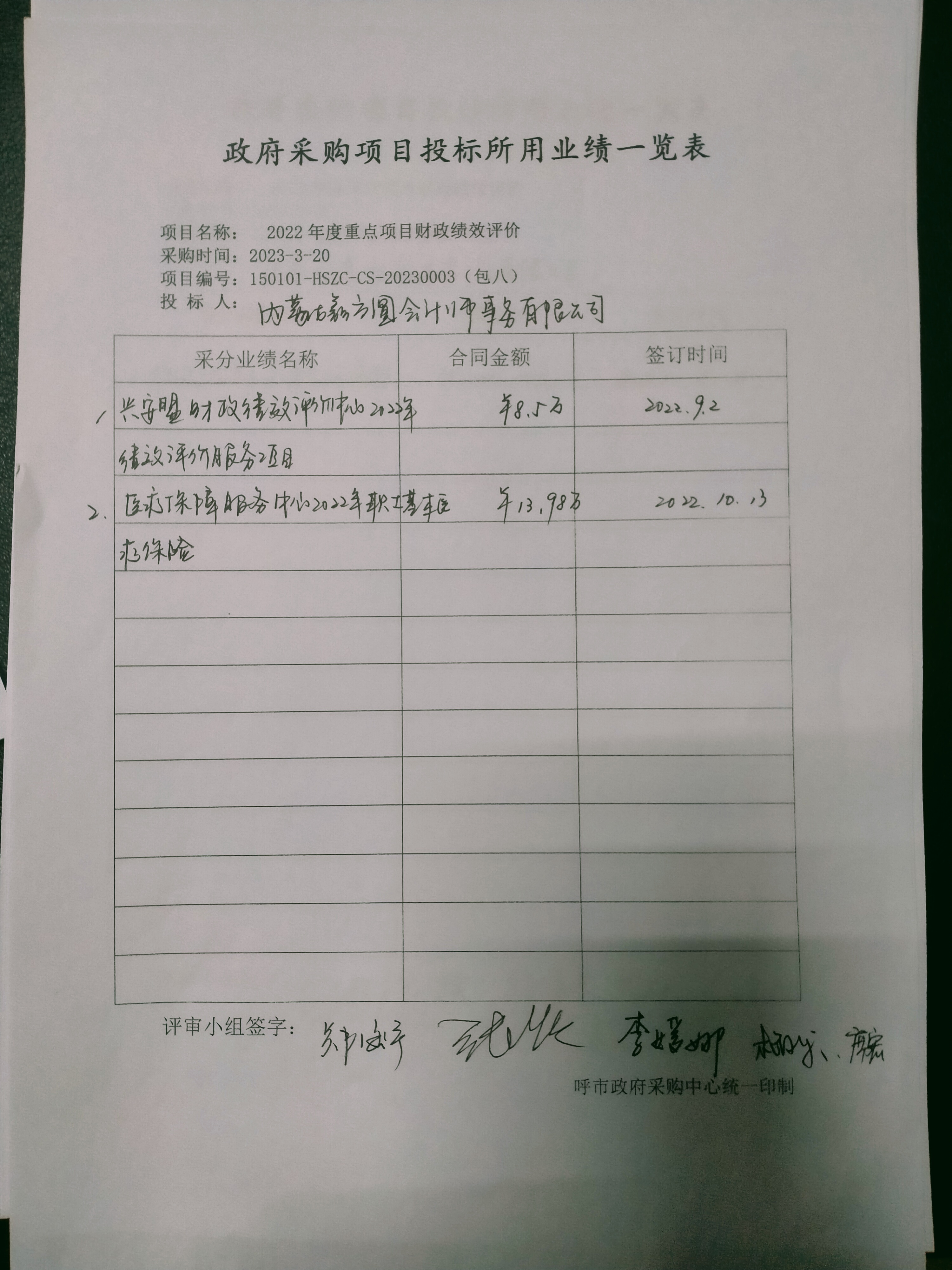 2023年3月23日呼和浩特市财政局2022年度重点项目财政绩效评价结果公告 |