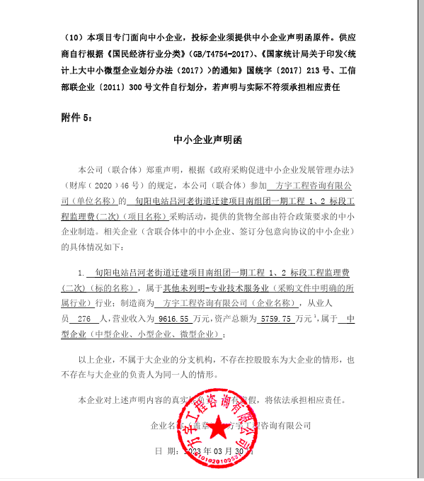 ----------------------------------招标机构发布信息原文:----------------------- 旬阳市库区移民工作站旬阳电站吕河老街道迁建项目南组团一期工程1、2标段工程监理费(二次)中标(成交)明细.pdf 中小企业声明函.png 十一、其他事项: ------------------------------------招标信息结束---------------------------- 标签: 工程 项目 旬阳 中标 标段 电站 工程监理 上一篇: 2023年3月31日大连融强投资有限公司庄河市2023年投融资咨询服务机构采购项目中标公告 最新5000条招标信息列表: 滚动招标 |