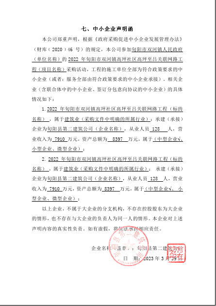 2023年3月31日2022年旬阳市双河镇高坪社区高坪至吕关联网路工程中标(成交)结果公告 |
