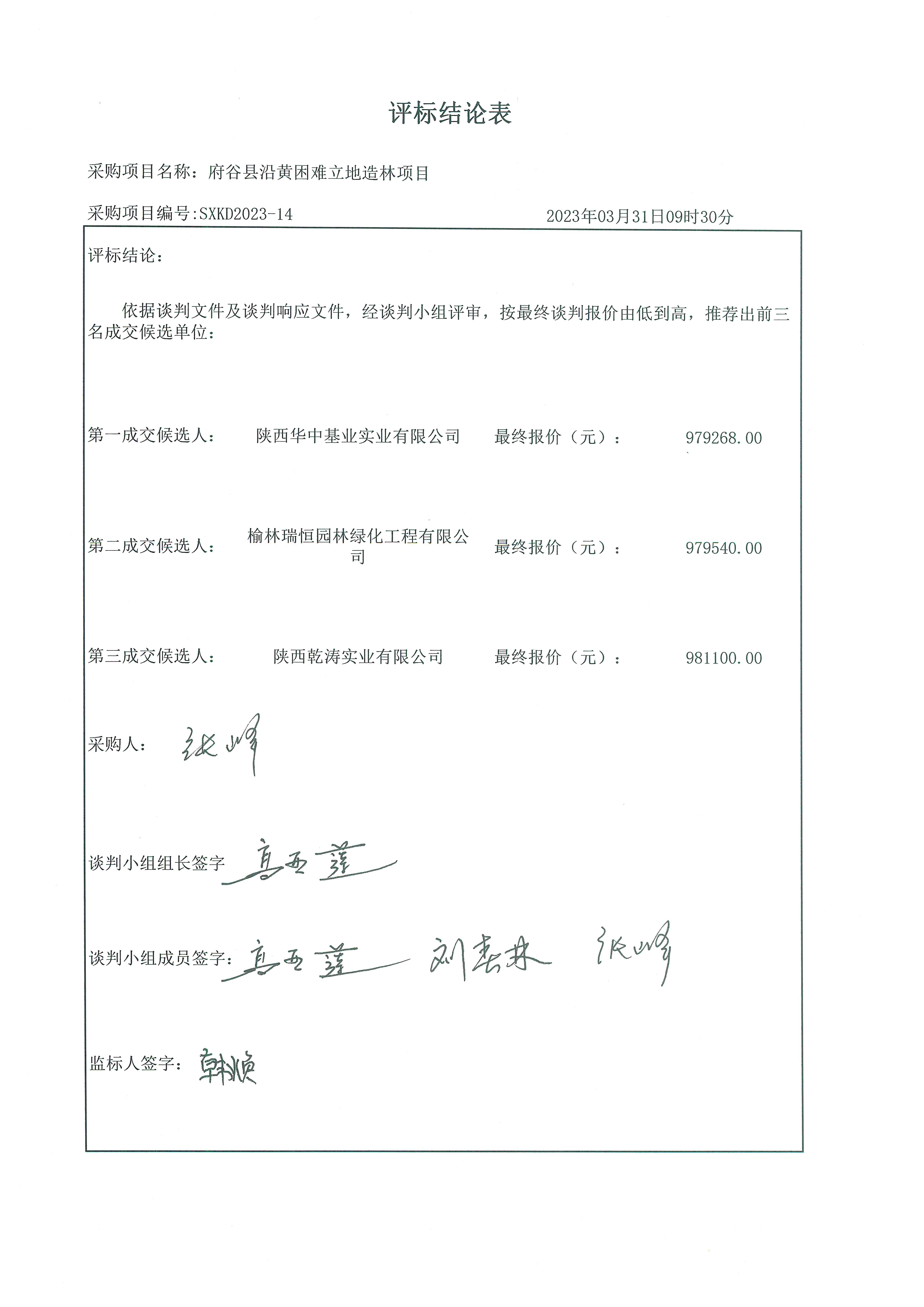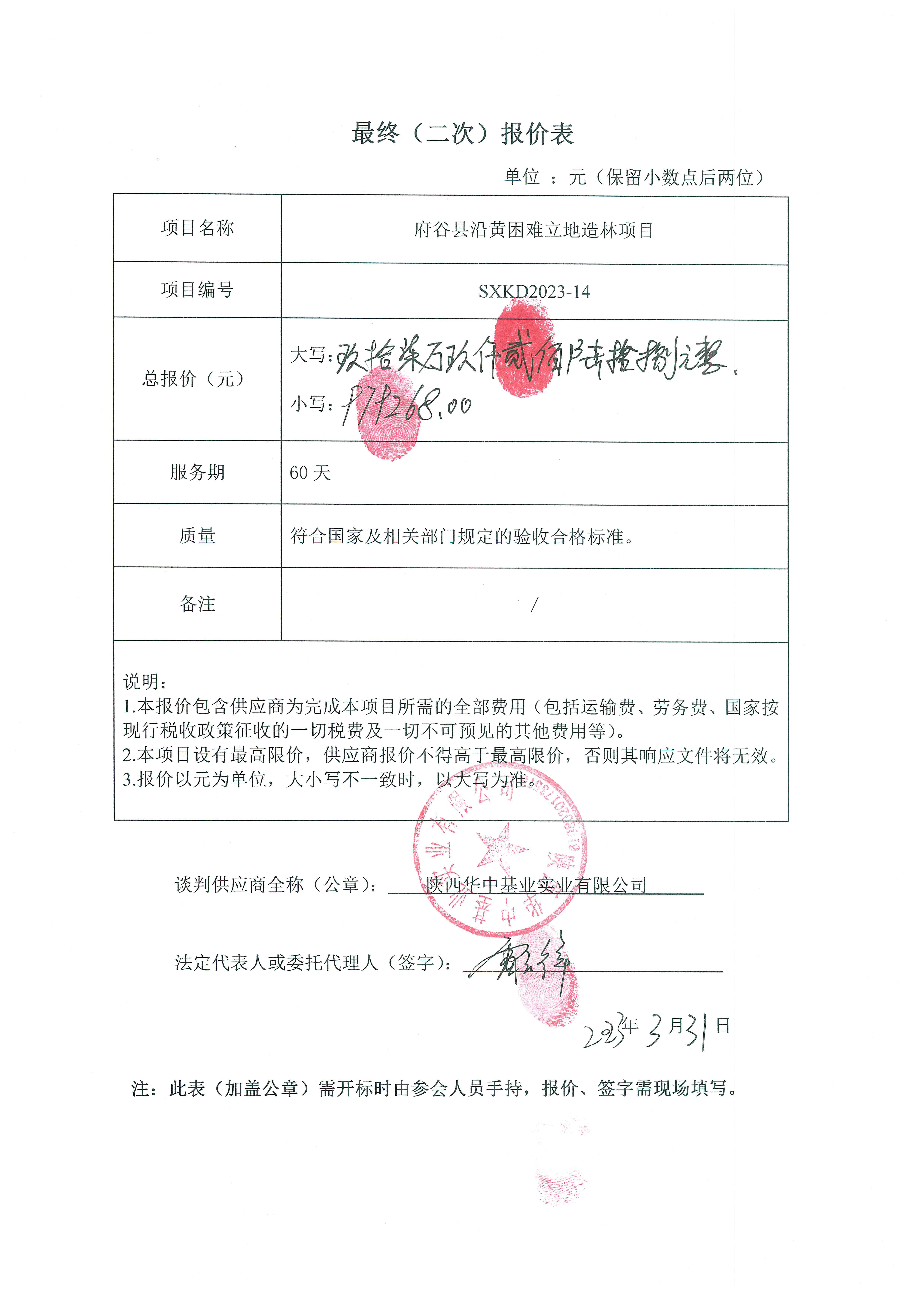 2023年4月1日府谷县沿黄困难立地造林项目中标(成交)结果公告 |
