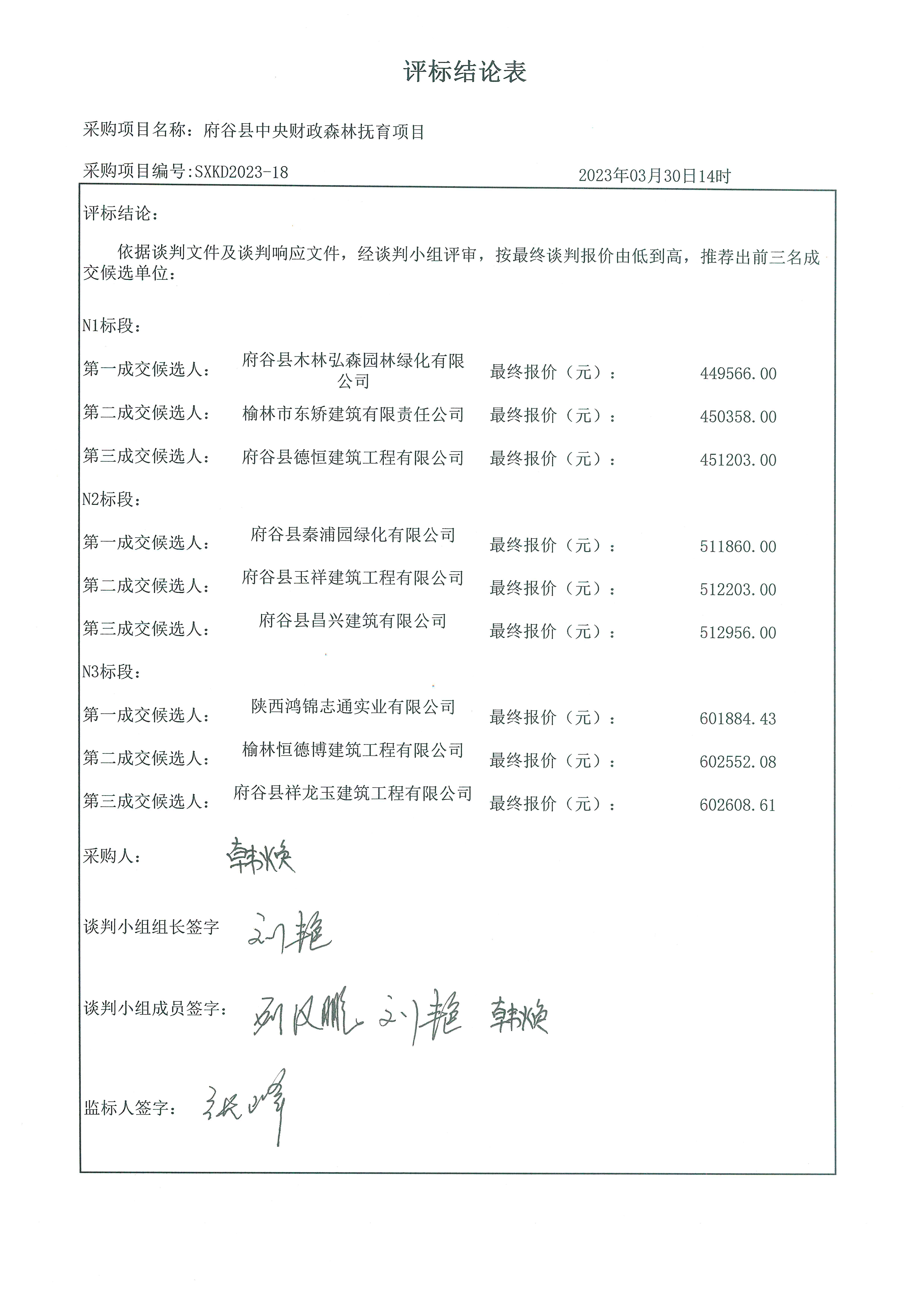 2023年4月1日府谷县中央财政森林抚育项目中标(成交)结果公告 |