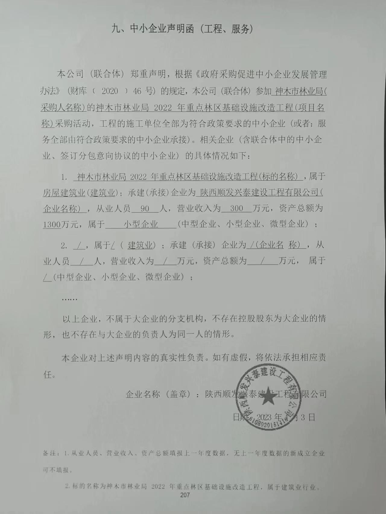 2023年4月7日神木市林业局2022年重点林区基础设施改造工程中标(成交)结果公告 |