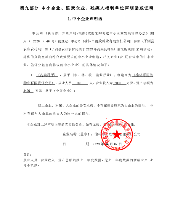 2023年4月10日子洲县农业农村局关于2023年高粱良种推广的采购项目中标(成交)结果公告 |