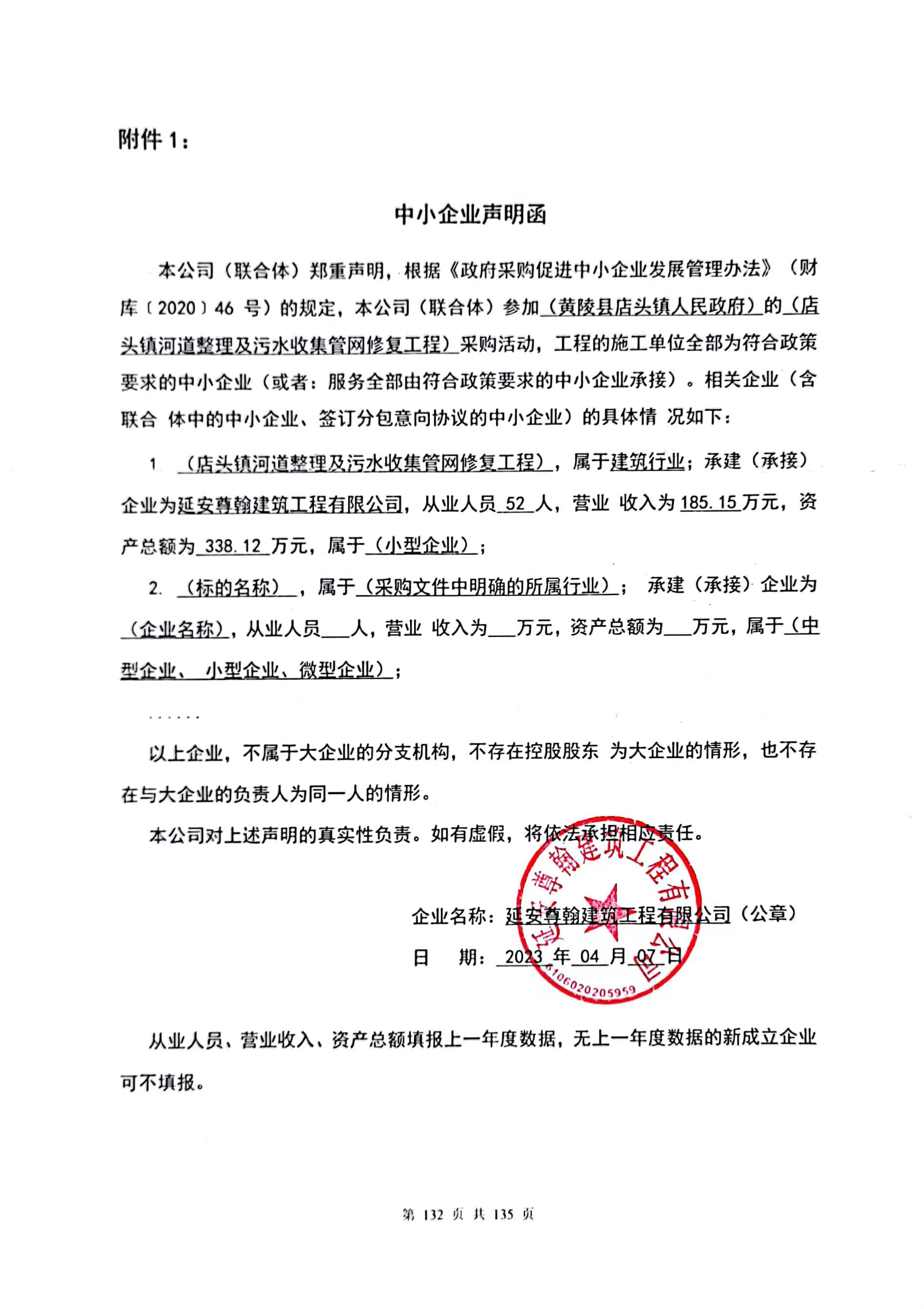 2023年4月11日黄陵县店头镇人民政府店头镇河道整理及污水收集管网修复工程中标(成交)结果公告 |