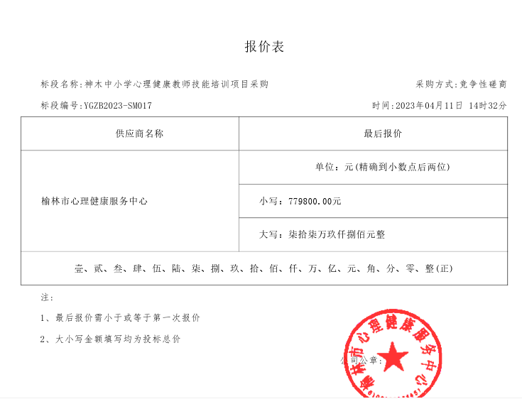 2023年4月12日神木中小学心理健康教师技能培训项目采购中标(成交)结果公告 |