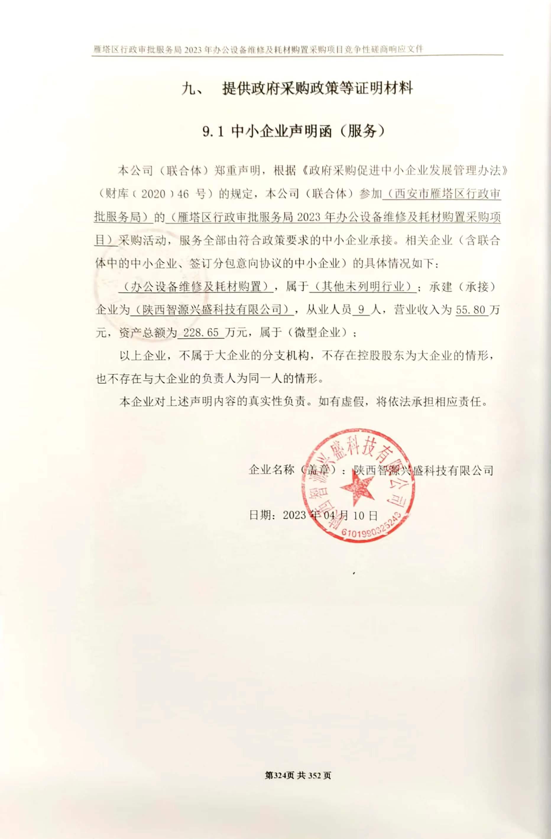 ----------------------------------招标机构发布信息原文:----------------------- 西安市雁塔区行政审批服务局雁塔区行政审批服务局2023年办公设备维修及耗材购置采购项目中标(成交)明细.pdf 磋商文件-2023年办公设备维修及耗材购置采购项目终.doc 二次报价表.pdf 中小企业声明函.jpg 十一、其他事项: ------------------------------------招标信息结束---------------------------- 标签: 采购 中标 项目 行政审批 公告 办公设备维修 雁塔区 上一篇: 2023年4月12日四川天府新区眉山管理委员会规划和自然资源局园地、林地、草地定级工作编制服务项目中标(成交)结果公告 最新5000条招标信息列表: 滚动招标 |