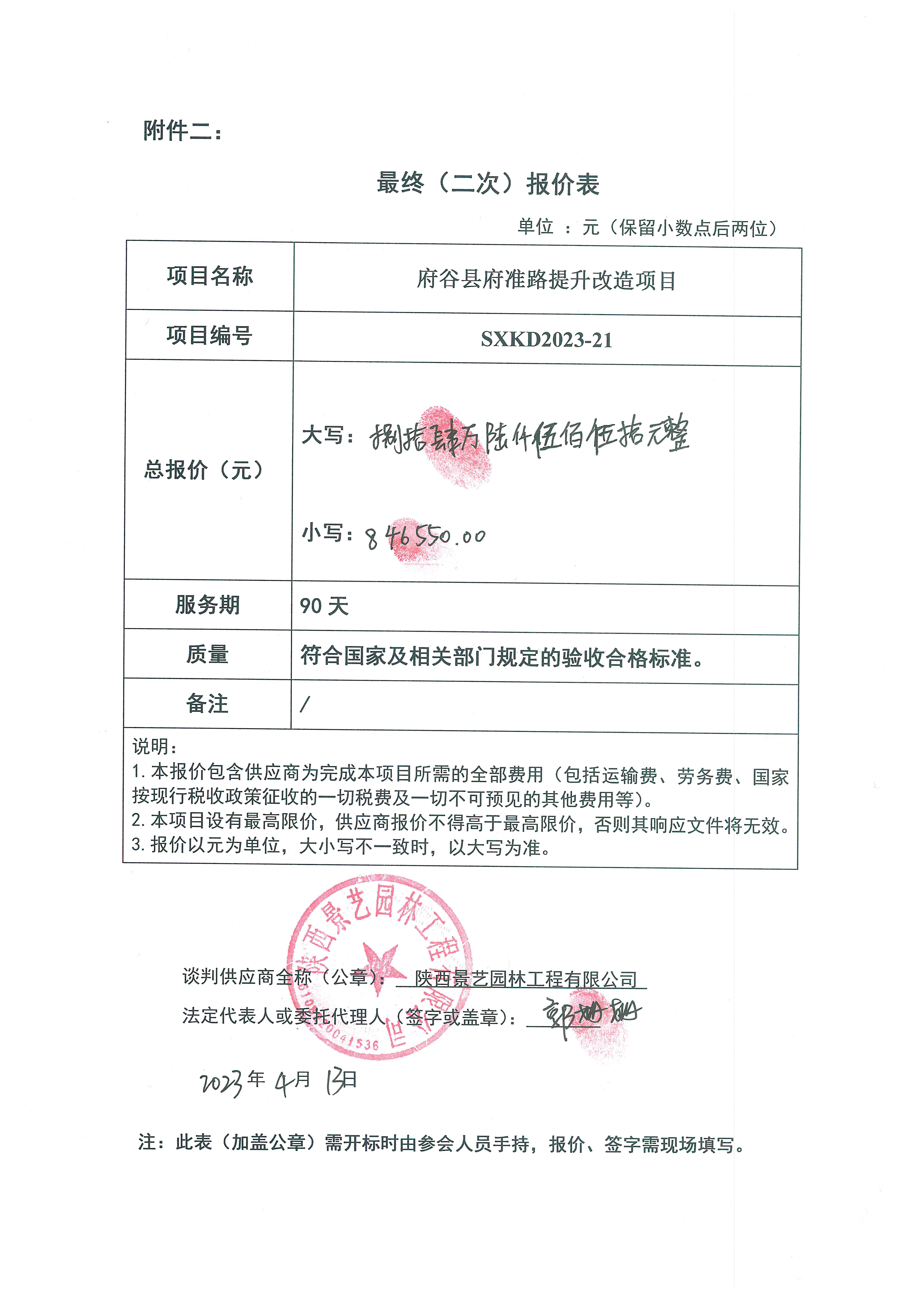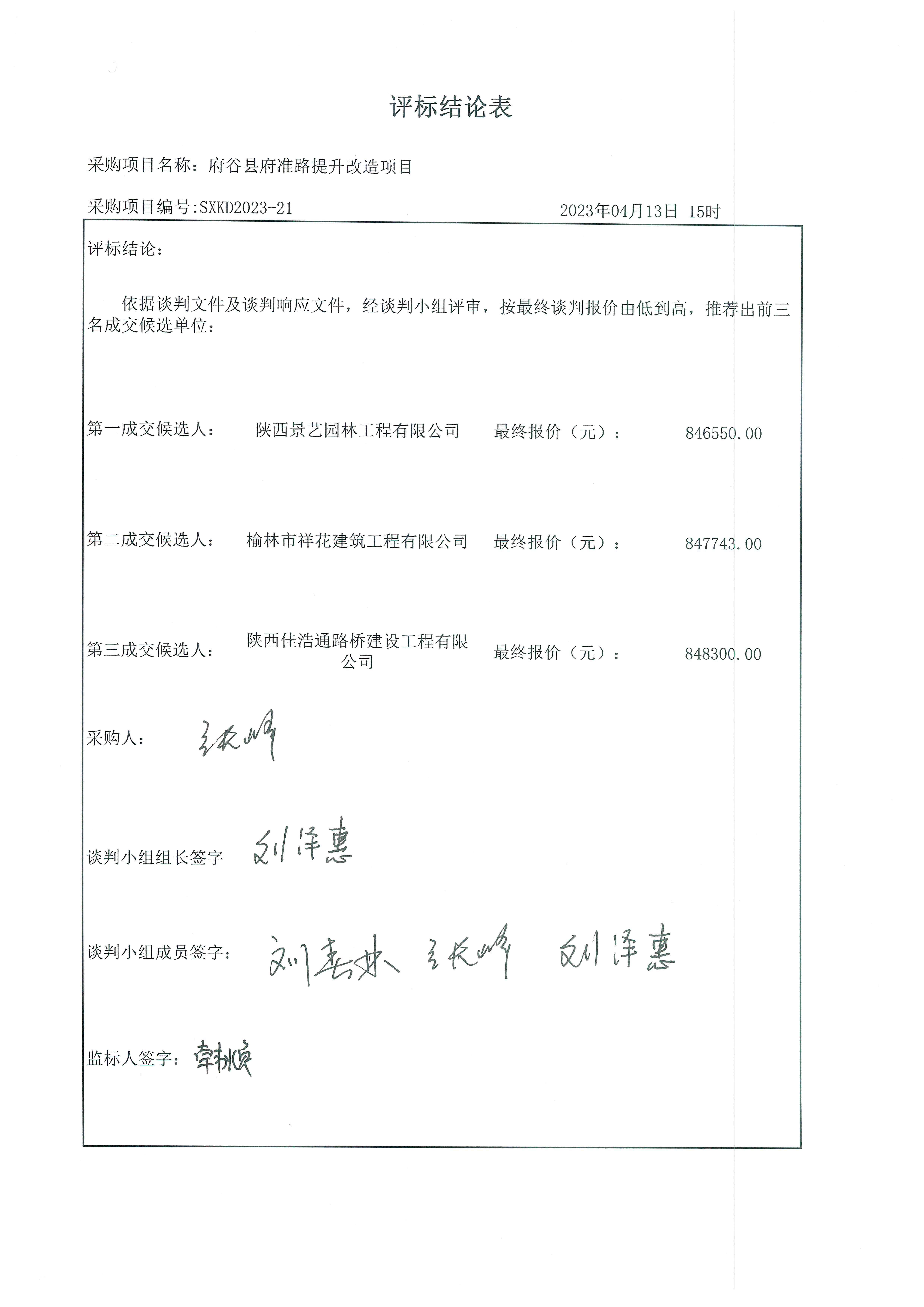 2023年4月14日府谷县府准路提升改造项目中标(成交)结果公告 |