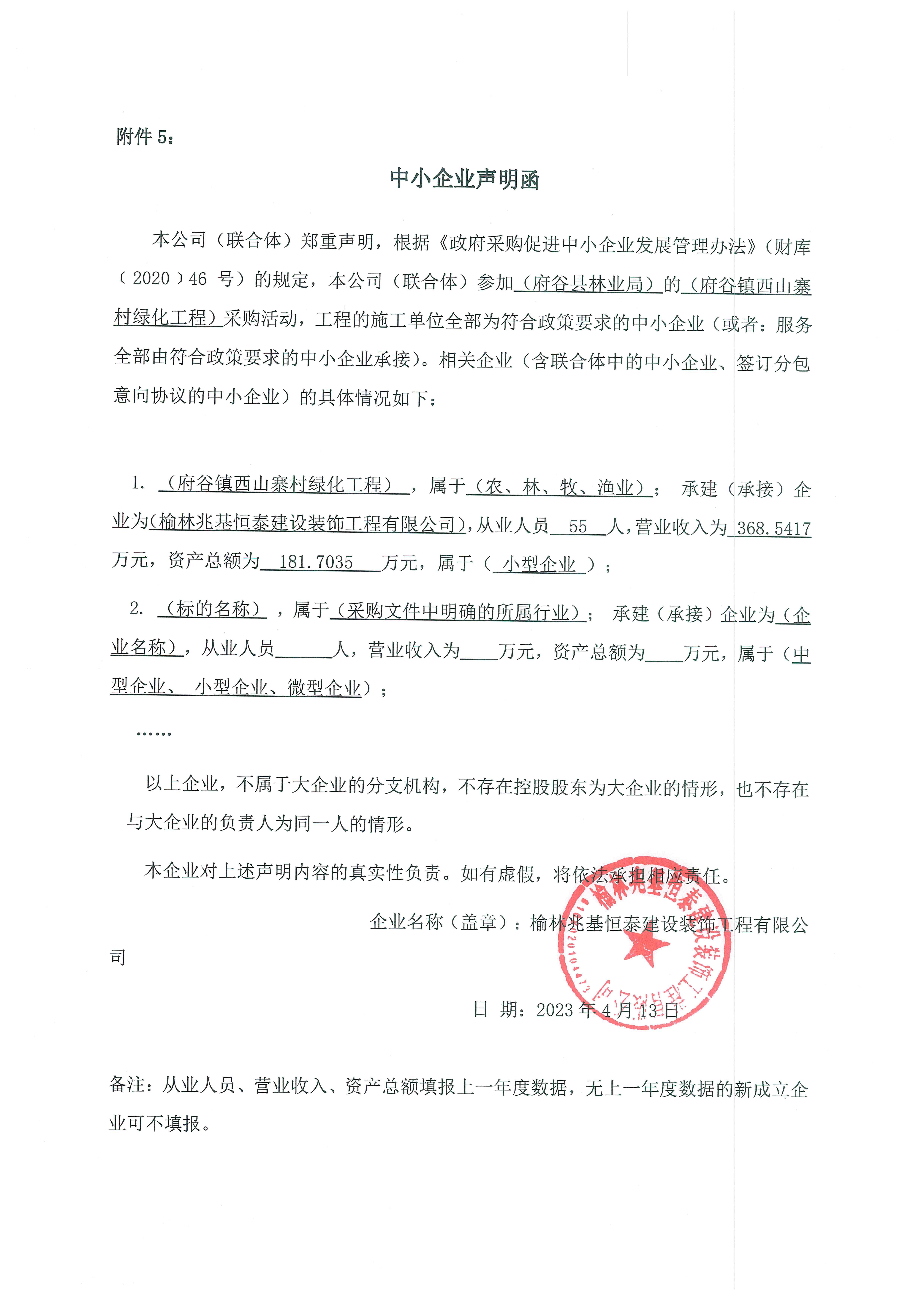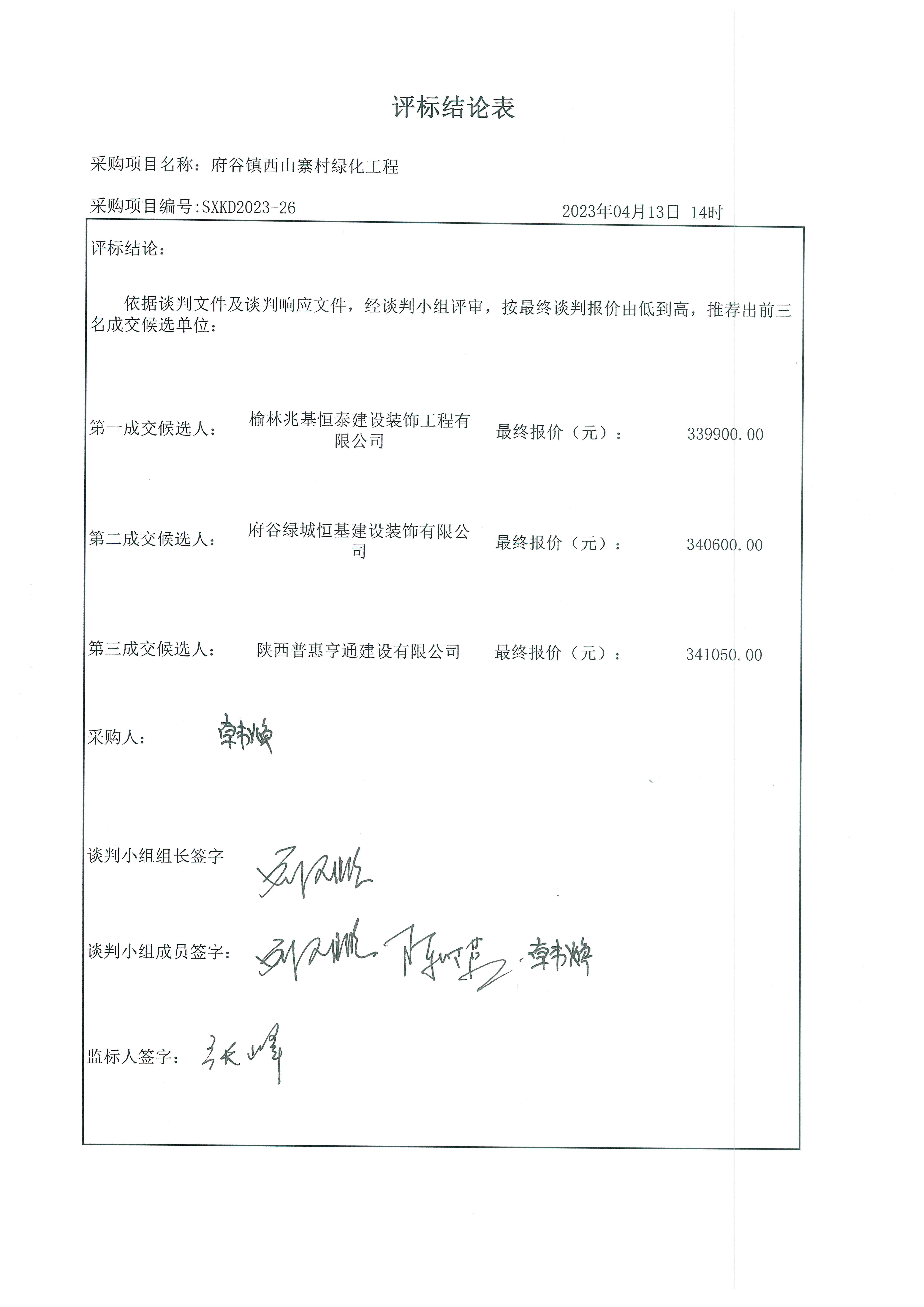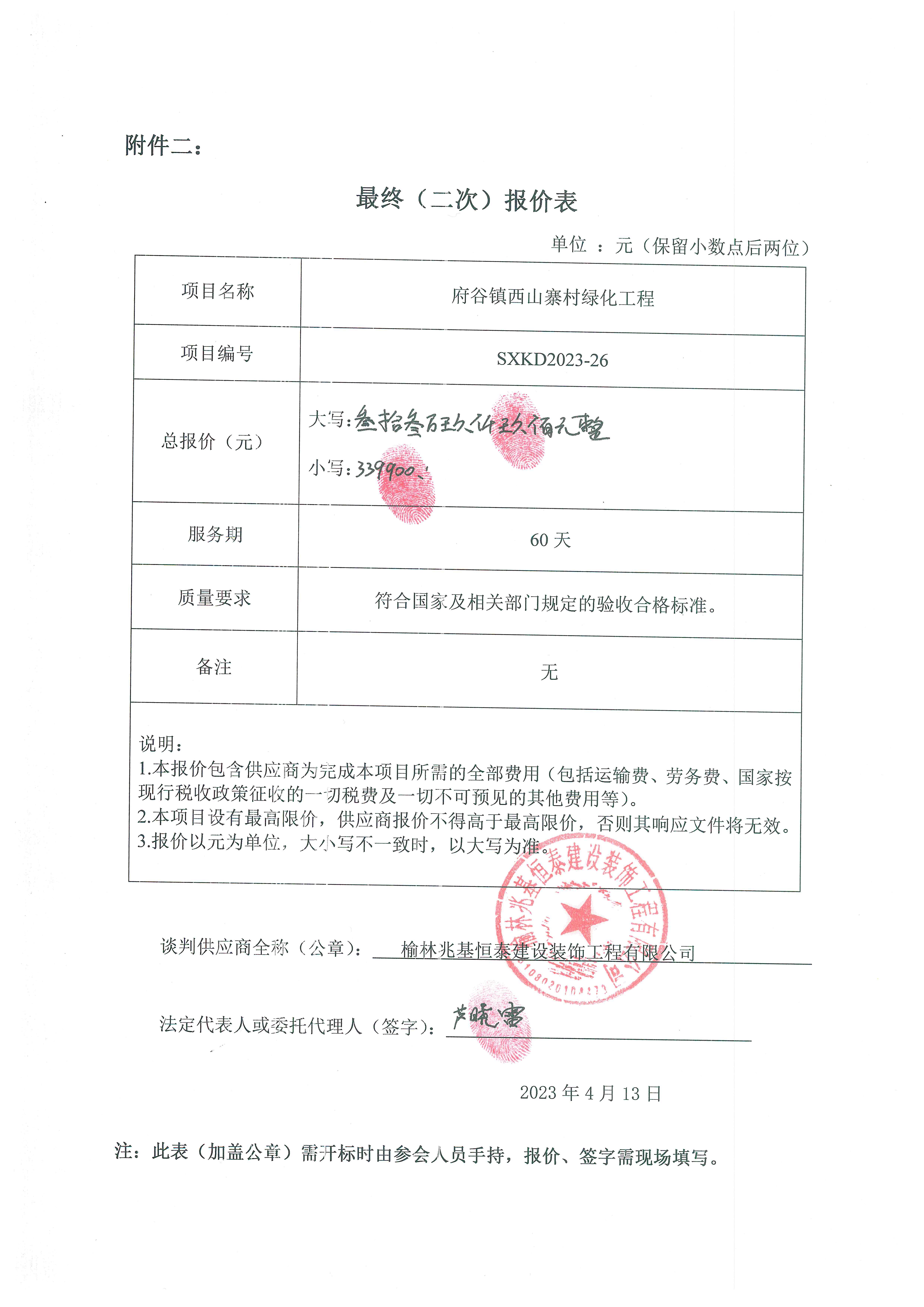 2023年4月14日府谷镇西山寨村绿化工程中标(成交)结果公告 |