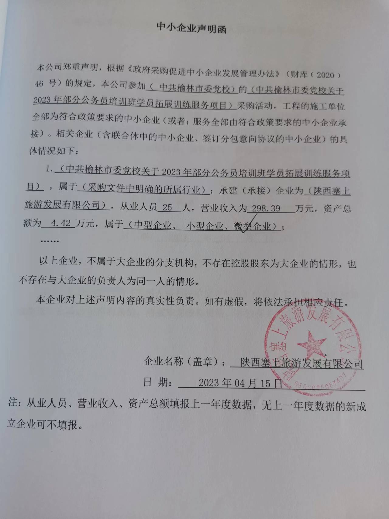 2023年4月19日中共榆林市委党校关于2023年部分公务员培训班学员拓展训练服务项目中标(成交)结果公告 |