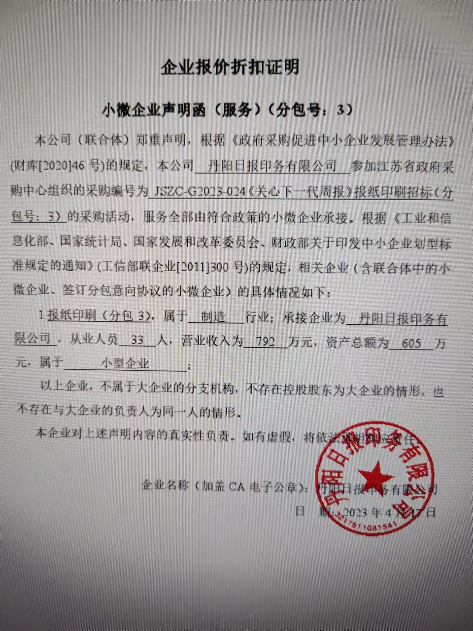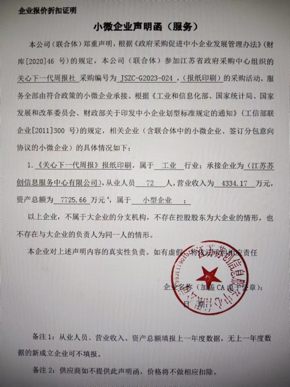 2023年4月20日关心下一代周报社报纸印刷公开招标中标公告JSZC-G2023-024 |