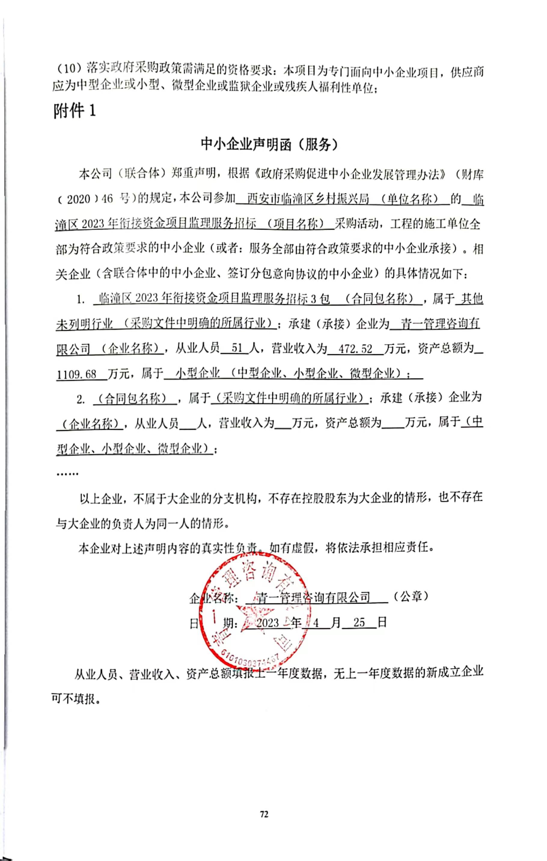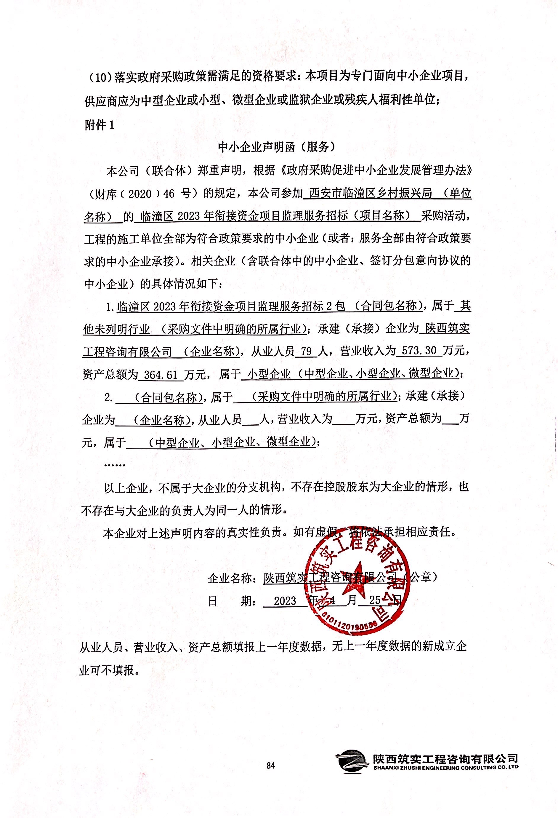 ----------------------------------招标机构发布信息原文:----------------------- 中小企业函.jpg 中小企业函.jpg 中小企业函.jpg 西安市临潼区乡村振兴局临潼区2023年衔接资金项目监理服务招标中标(成交)明细.pdf 监理招标文件(终).doc 十一、其他事项: ------------------------------------招标信息结束---------------------------- 标签: 招标 中标 项目 西安市 乡村 资金 公告 上一篇: 2023年4月26日河间市民族宗教事务局2023年省级少数民族发展资金(果子洼回族乡北务尔头村道路硬化)项目中标公告 最新5000条招标信息列表: 滚动招标 |