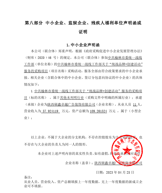 2023年4月26日中共榆林市委统一战线工作部关于“统战品牌+创建活动”服务的采购项目中标(成交)结果公告 |