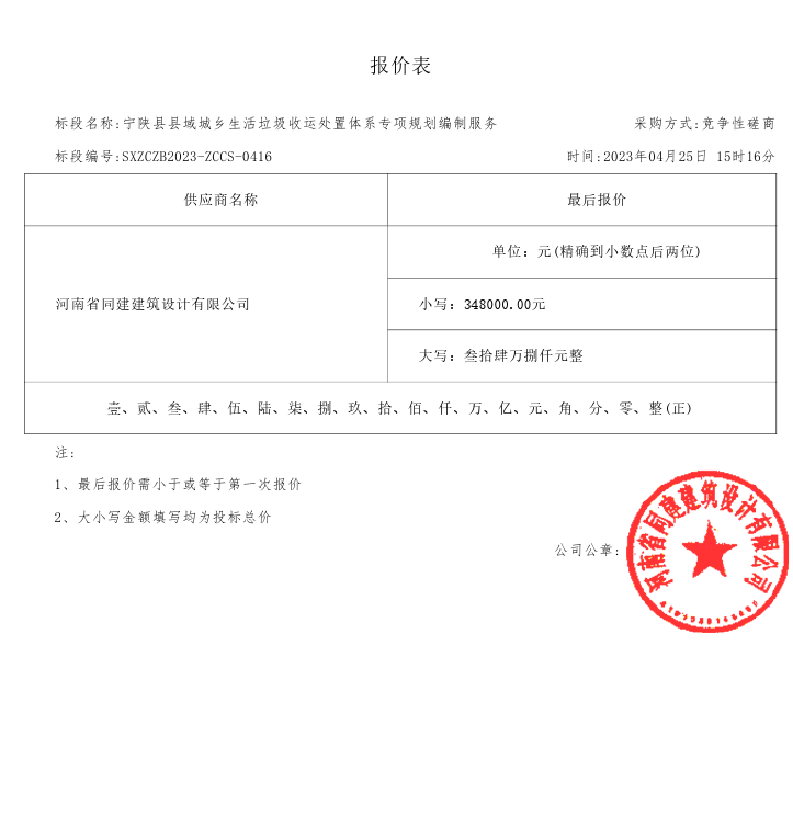 2023年4月26日宁陕县住房和城乡建设局宁陕县县域城乡生活垃圾收运处置体系专项规划编制服务中标(成交)结果公告 |