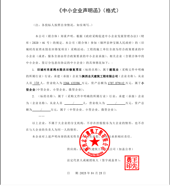 ----------------------------------招标机构发布信息原文:----------------------- 旧城村肖家湾水毁农田修复项目.doc 声明函.png 镇坪县钟宝镇人民政府(本级)旧城村肖家湾水毁农田修复项目中标(成交)明细.pdf 十一、其他事项: ------------------------------------招标信息结束---------------------------- 标签: 中标 项目 镇坪县 旧城 农田 家湾 公告 上一篇: 2023年4月26日南京大学高分辨X射线衍射仪采购项目中标公告 最新5000条招标信息列表: 滚动招标 |