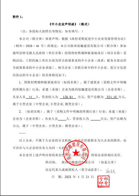 2023年4月26日镇坪县钟宝镇人民政府(本级)得胜村烤烟种植基地项目中标(成交)结果公告 |