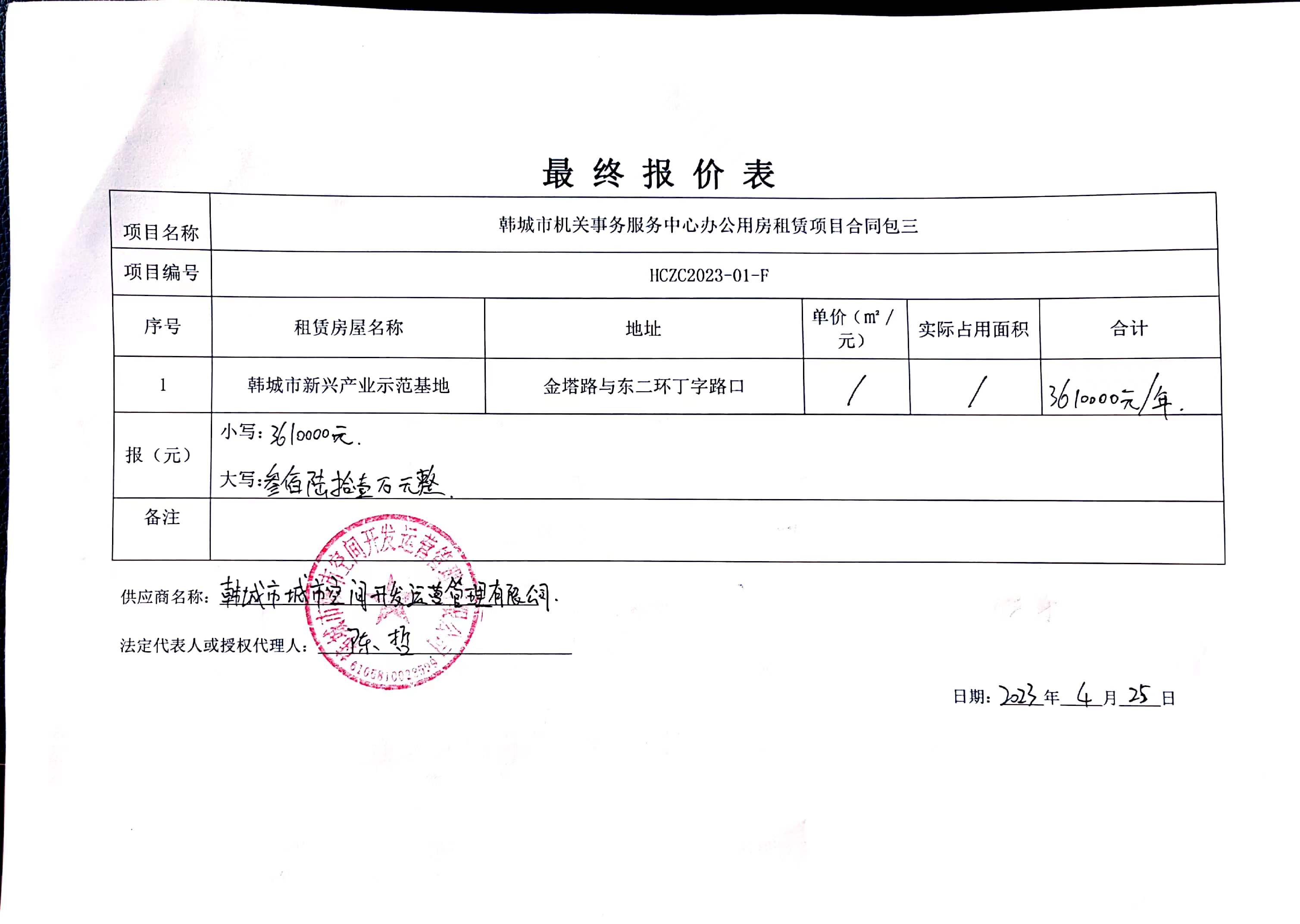 2023年4月27日韩城市机关事务服务中心办公用房租赁项目中标(成交)结果公告 |