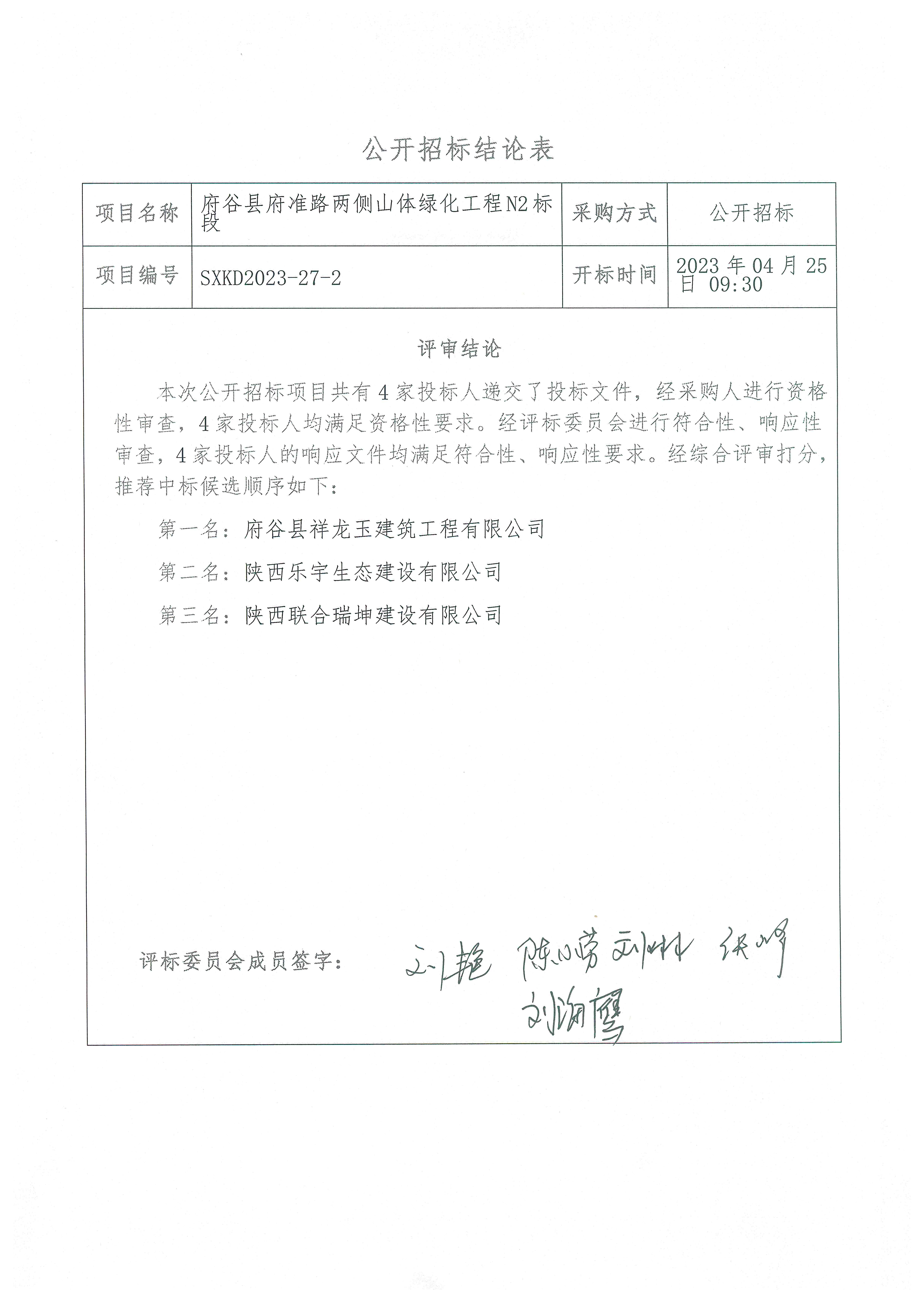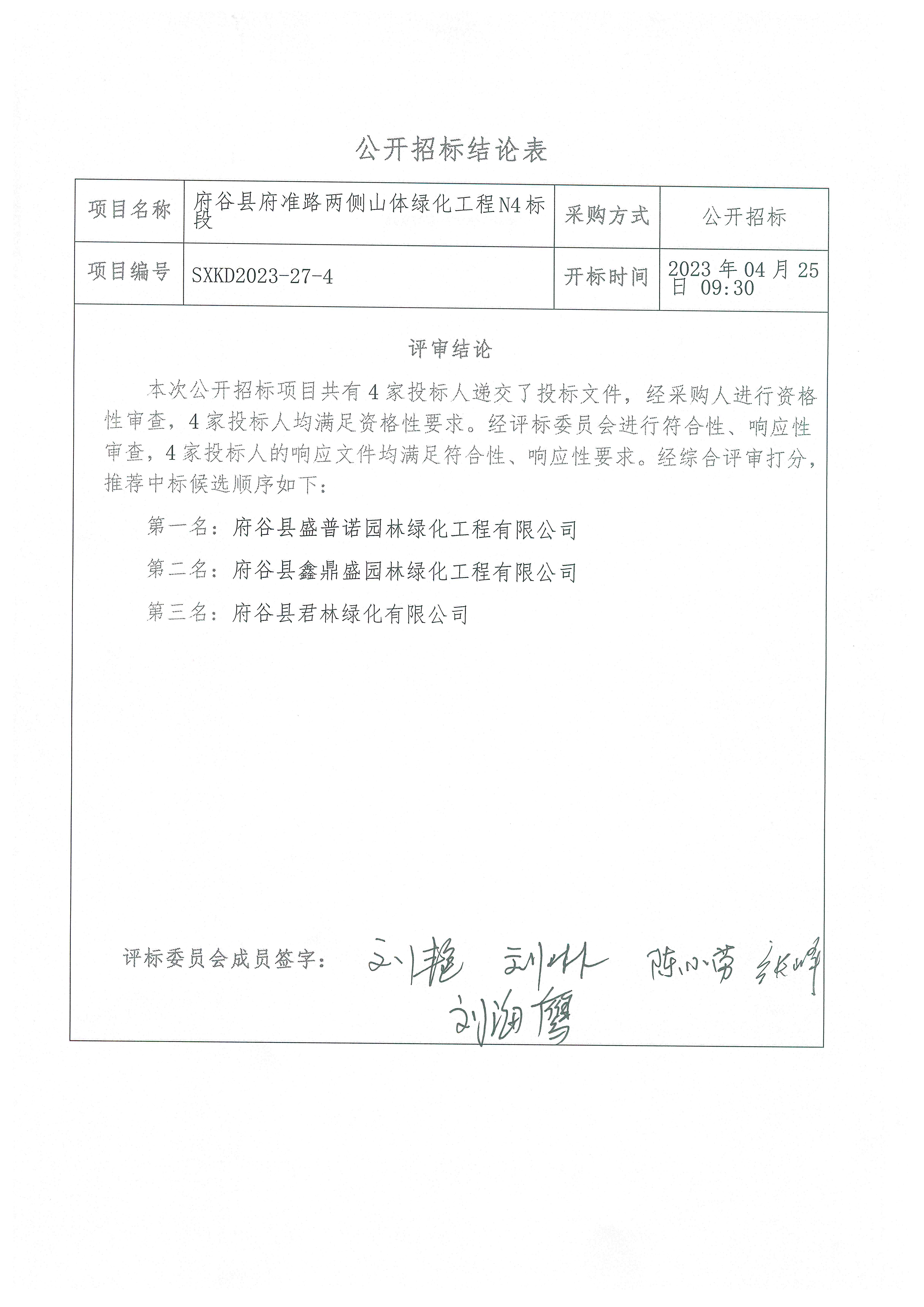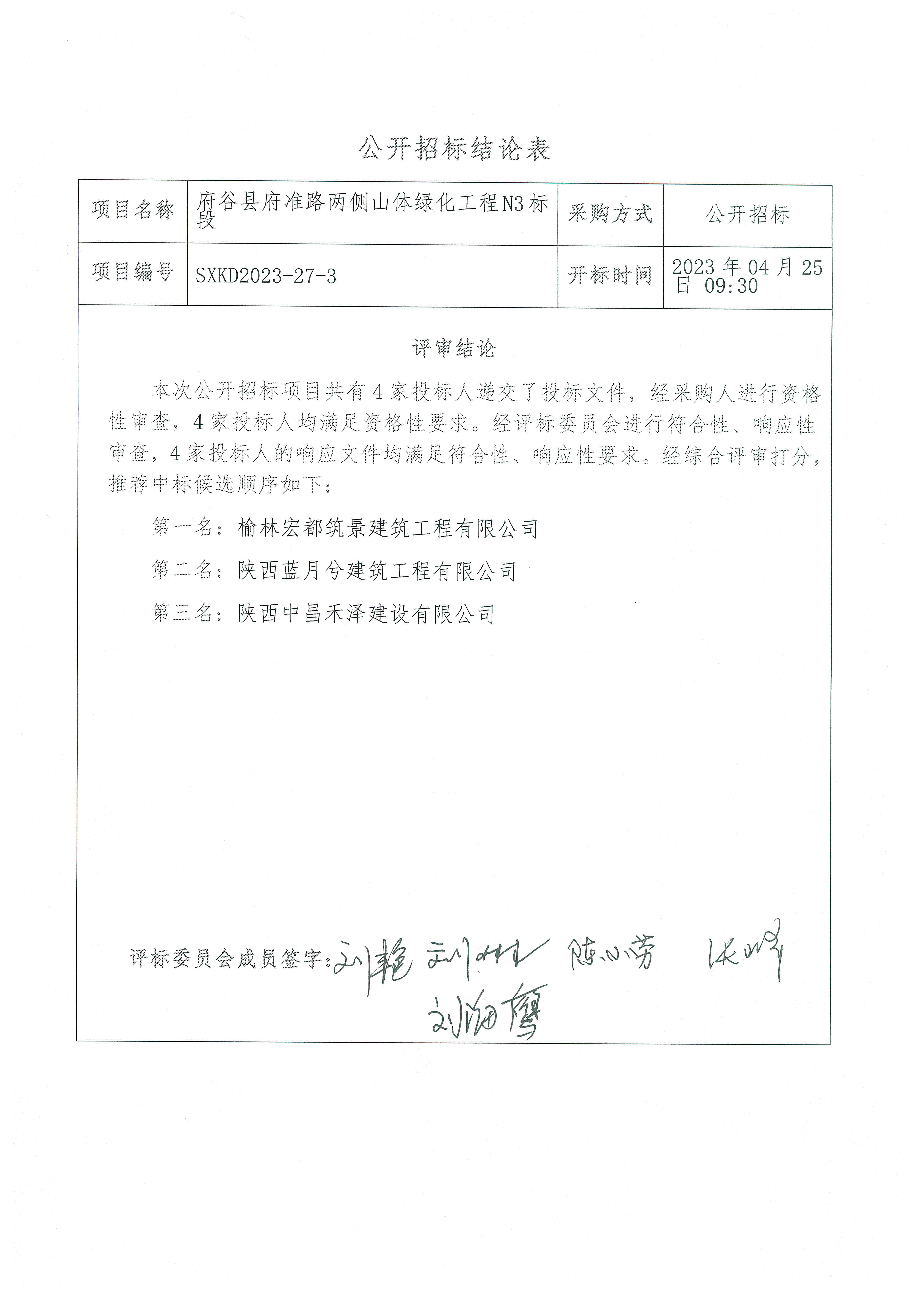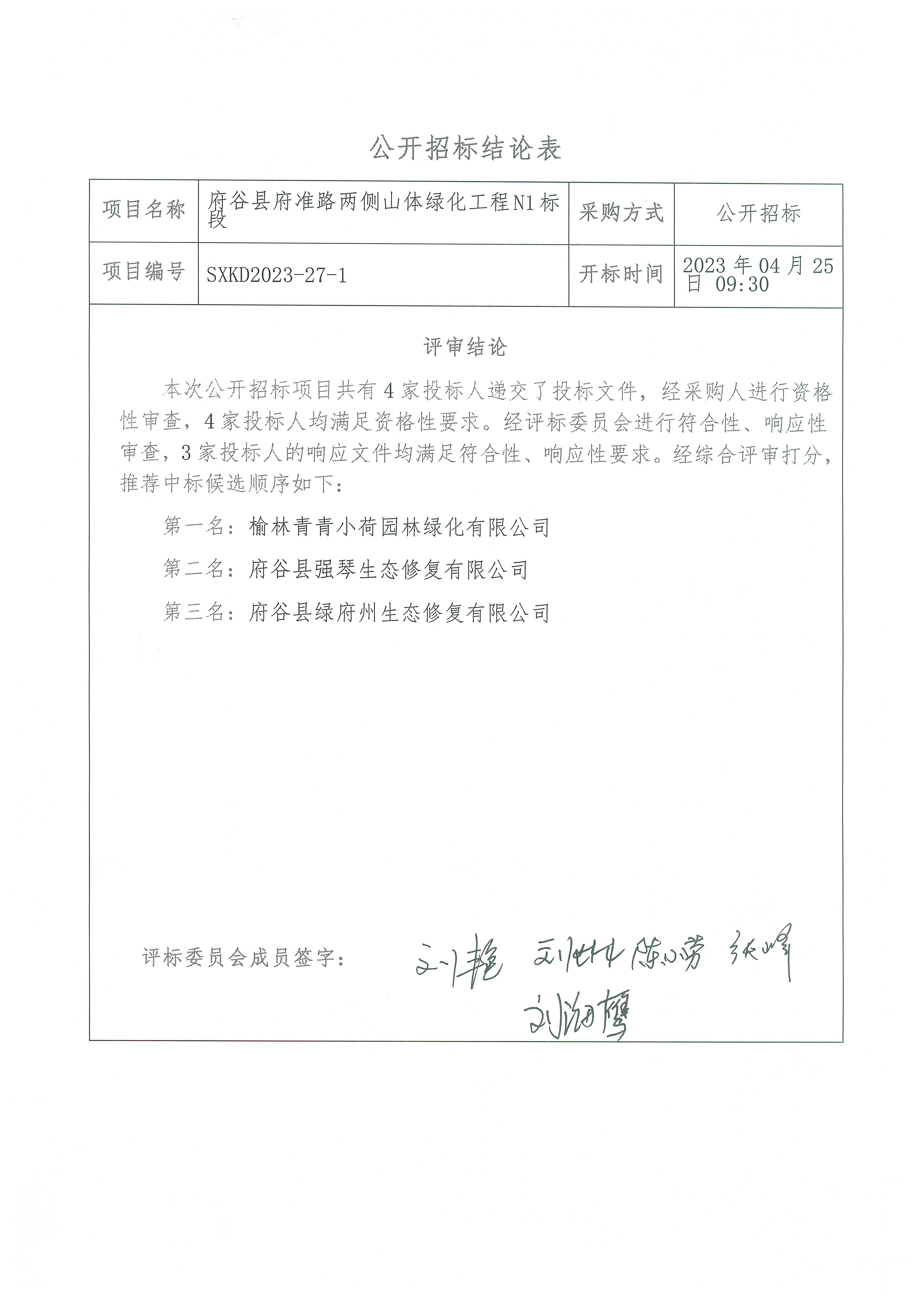 2023年4月27日府谷县府准路两侧山体绿化工程中标(成交)结果公告 |