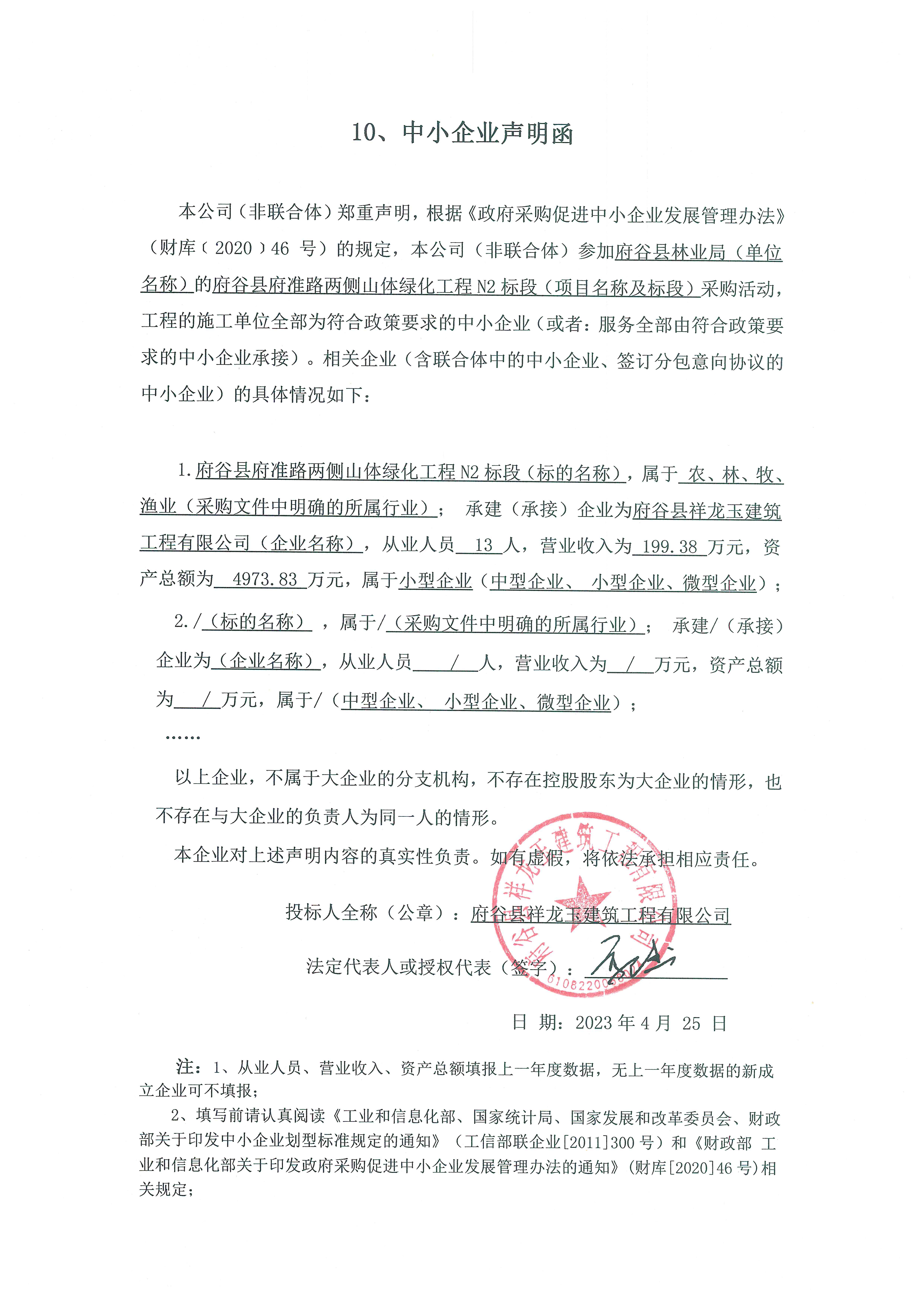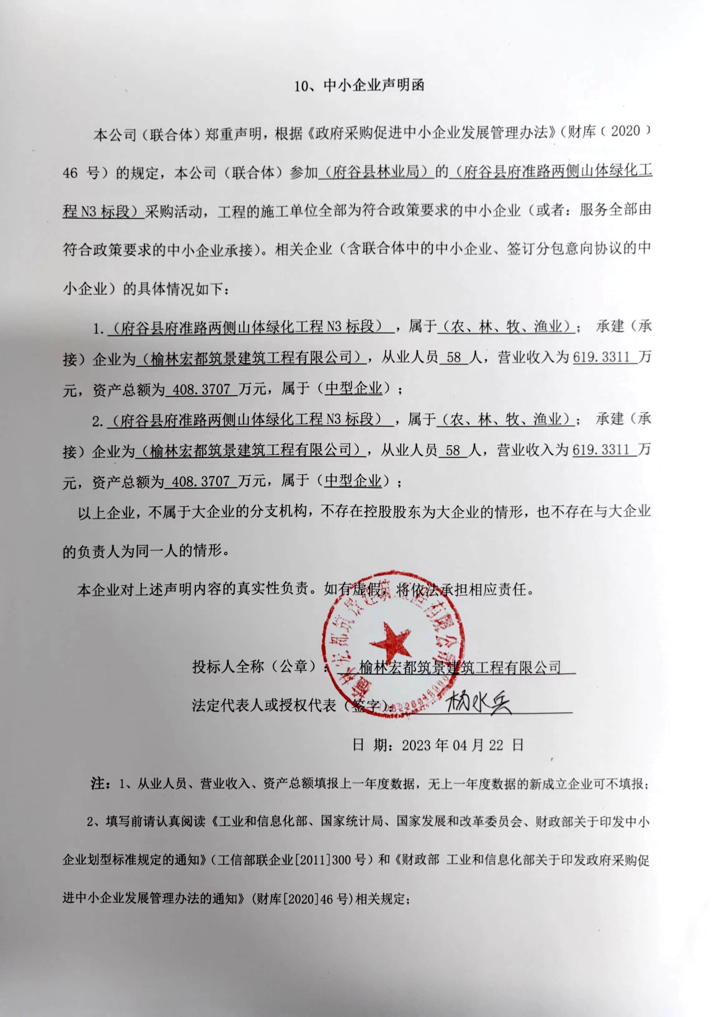 ----------------------------------招标机构发布信息原文:----------------------- 招标文件正文.pdf 招标文件正文.pdf 招标文件正文.pdf 招标文件正文.pdf 招标文件正文.pdf 府谷县林业局本级府谷县府准路两侧山体绿化工程中标(成交)明细.pdf N1标段结论表.jpg N1汇总表.jpg N1标段中小企业声明函.pdf N2标段汇总表.jpg N2标段结论表.jpg N2标段中小企业声明函.jpg N3标段汇总.jpg N3结论表.jpg N3标段中小企业声明函.jpg N4标段汇总表.jpg N4标段结论表.jpg N4标段中小企业声明函.png N5标段汇总表.jpg N5标段结论表.jpg N5标段中小企业声明函.jpg 十一、其他事项: ------------------------------------招标信息结束---------------------------- 标签: 中标 府谷 山体 绿化工程 县府 公告 上一篇: 2023年4月27日迁西县住房和城乡建设局唐式护栏及标志牌安装工程中标公告 最新5000条招标信息列表: 滚动招标 |