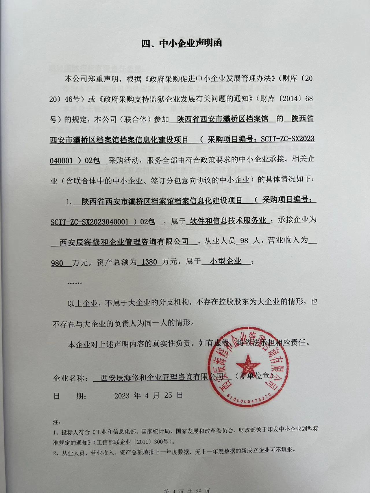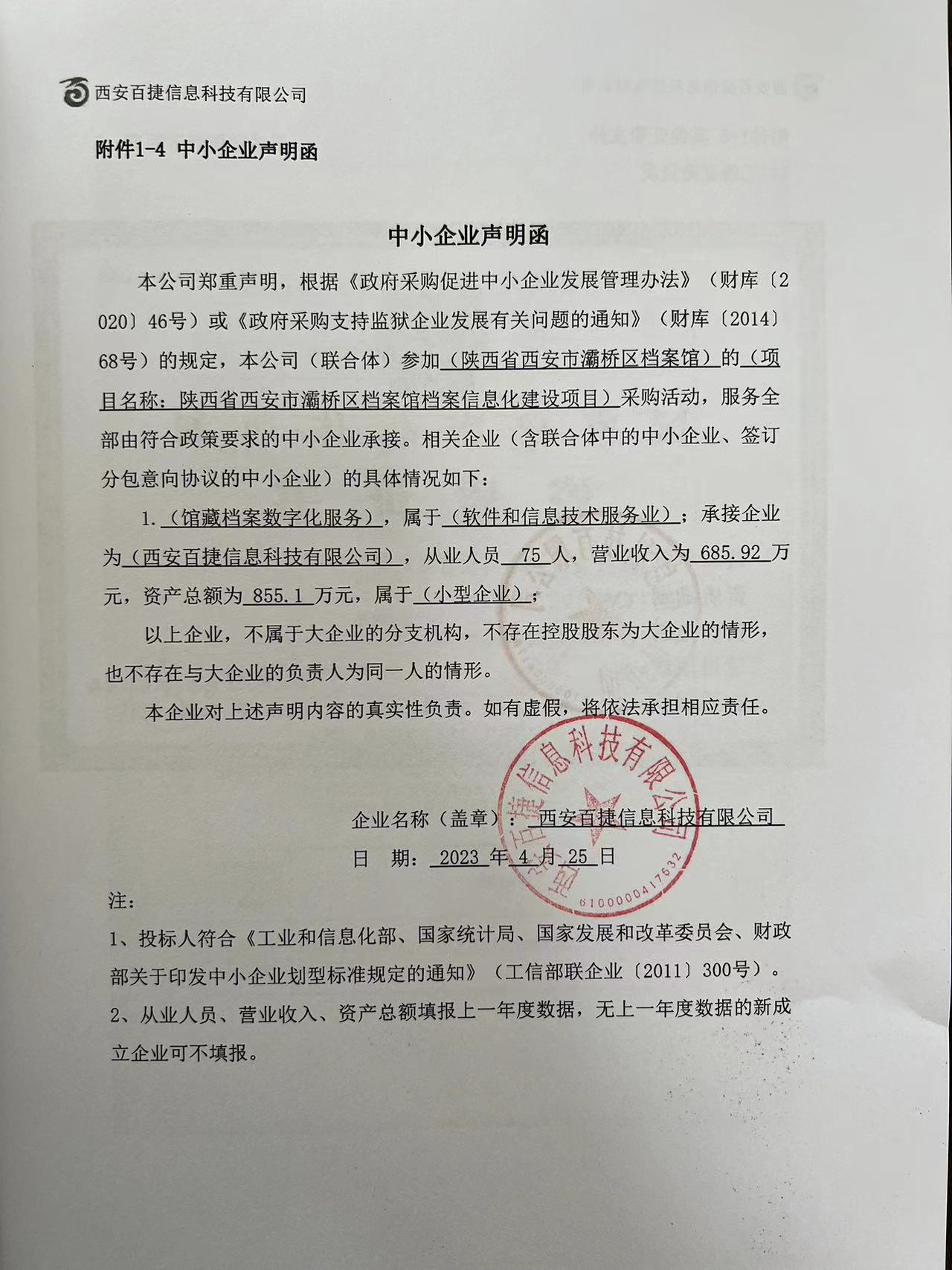 2023年4月27日陕西省西安市灞桥区档案馆档案信息化建设项目中标(成交)结果公告 |