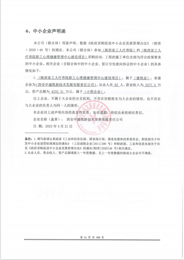 ----------------------------------招标机构发布信息原文:----------------------- 陕西省工人疗养院职工心理健康管理中心建设项目中标(成交)明细.pdf 陕西省工人疗养院职工心理健康管理中心建设项目.doc 中小企业声明函.png 十一、其他事项: ------------------------------------招标信息结束---------------------------- 标签: 中标 陕西省 疗养院 管理中心 建设项目 心理健康 工人 上一篇: 2023年4月27日木兰县中医医院设备采购结果公告 最新5000条招标信息列表: 滚动招标 |