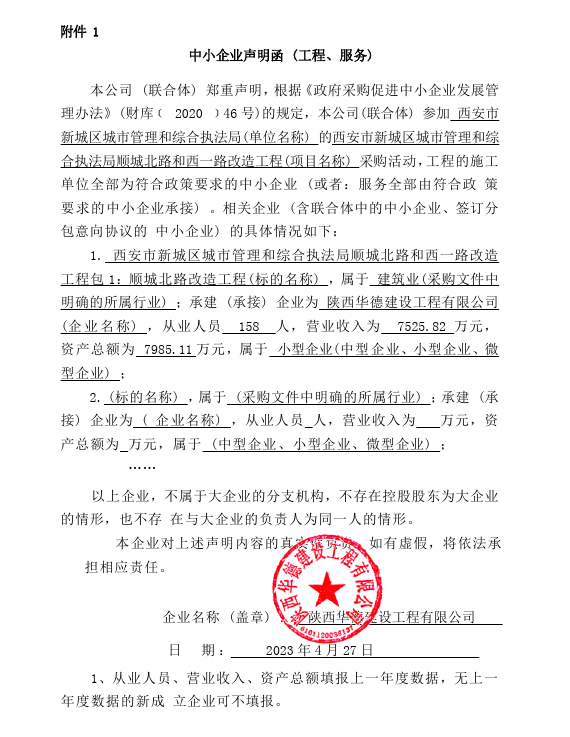 ----------------------------------招标机构发布信息原文:----------------------- 151(包1:顺城北路)线上招标文件(定稿).doc 中小企业声明函(包1).png 151(包2:西一路)线上招标文件(定稿).doc 中小企业声明函(包2).png 西安市新城区城市管理和综合执法局顺城北路和西一路改造工程中标(成交)明细.pdf 十一、其他事项: ------------------------------------招标信息结束---------------------------- 标签: 中标 西安 城北 改造工程 城市管理 市新 执法局 上一篇: 2023年4月28日杭州市公共资源交易中心(杭州市政府采购中心、杭州市建设工程交易中心)关于浙江省杭州高级中学贡院、钱江校区2023年物业管理服务采购项目的中标(成交)结果公告 最新5000条招标信息列表: 滚动招标 |