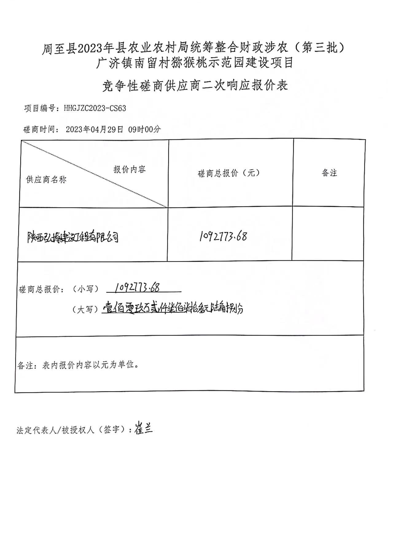 2023年4月30日西安市周至县农业综合开发服务中心周至县2023年县农业农村局统筹整合财政涉农(第三批)广济镇南留村猕猴桃示范园建设项目中标(成交)结果公告 |