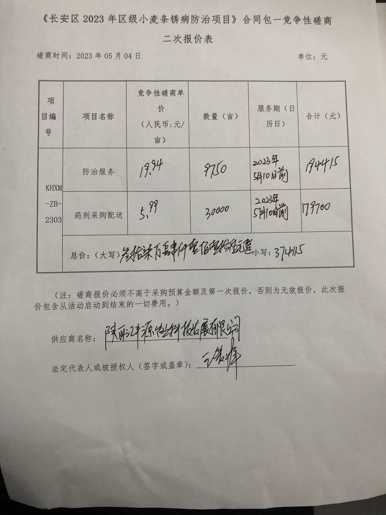 ----------------------------------招标机构发布信息原文:----------------------- 西安市长安区农业技术推广中心长安区2023年区级小麦条锈病防治项目中标(成交)明细.pdf 包二二次报价表.jpg 包二中小企业声明函.jpg 包一二次报价表.jpg 包一中小企业声明函.jpg 十一、其他事项: ------------------------------------招标信息结束---------------------------- 标签: 项目 中标 长安 条锈病 小麦 区级 公告 上一篇: 2023年5月5日长春市二道区英俊镇卫生院劳务派遣项目二次中标公告 最新5000条招标信息列表: 滚动招标 |