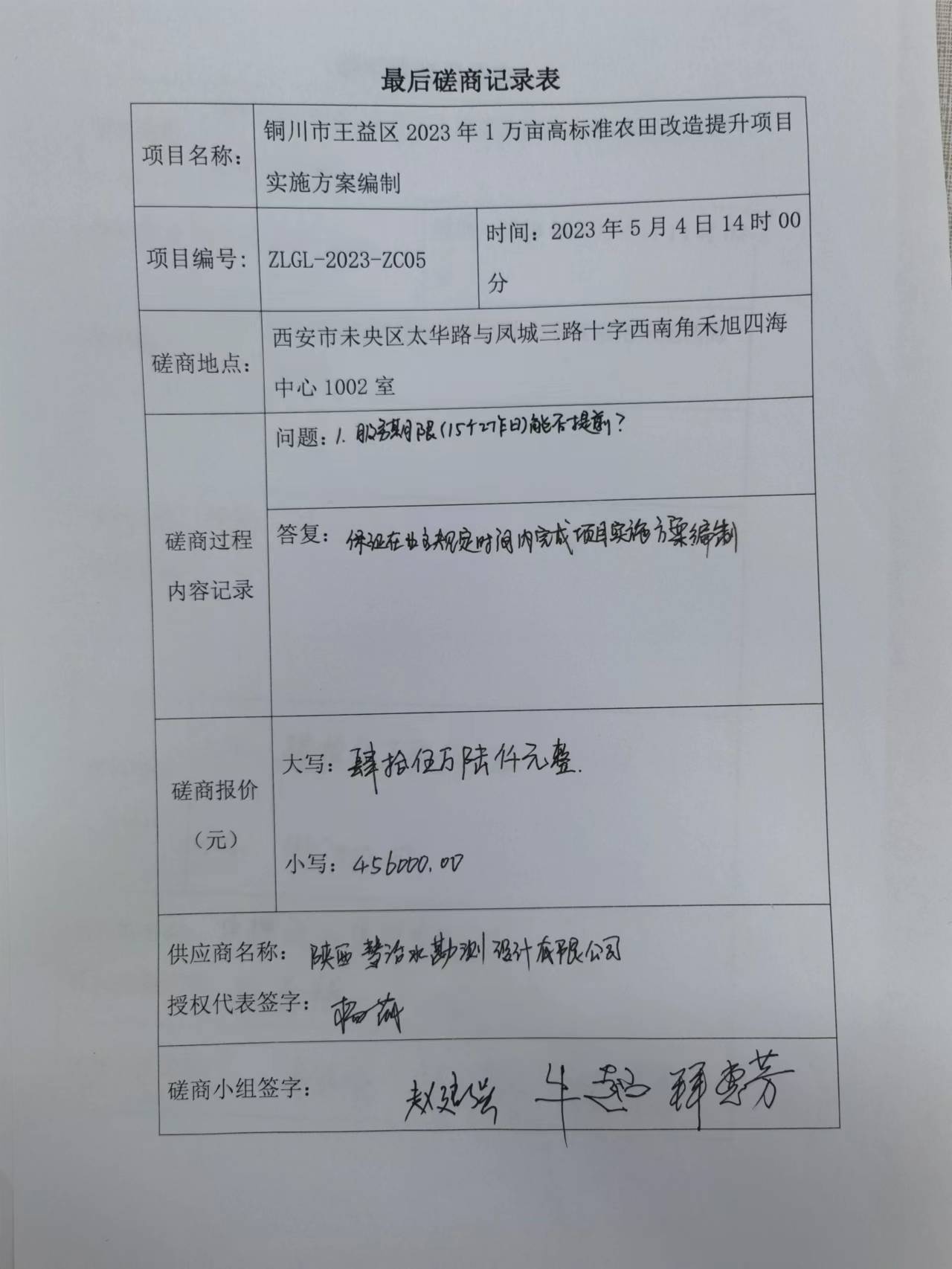 2023年5月6日铜川市王益区2023年1万亩高标准农田改造提升项目实施方案编制中标(成交)结果公告 |