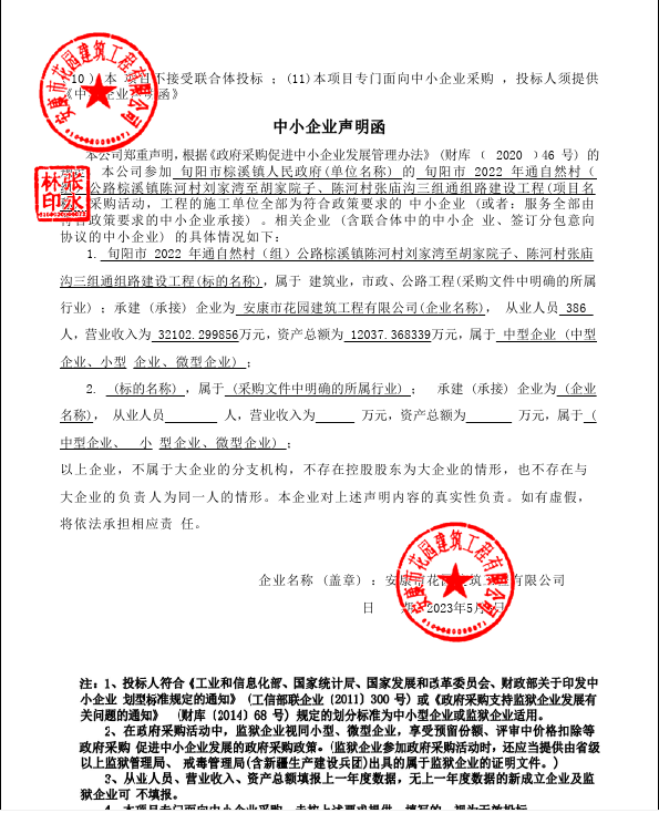 ----------------------------------招标机构发布信息原文:----------------------- 中小企业声明函(花园).png 旬阳市财政局棕溪财政所棕溪镇陈河村张庙沟三组通组路、刘家湾至胡家院子通组路工程中标(成交)明细.pdf 十一、其他事项: ------------------------------------招标信息结束---------------------------- 标签: 工程 中标 旬阳 自然村 院子 三组 刘家 上一篇: 2023年5月9日庆丰经济联合社环保驿站工程中标公示 最新5000条招标信息列表: 滚动招标 |