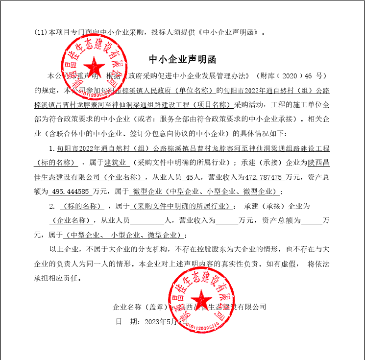 ----------------------------------招标机构发布信息原文:----------------------- 中小企业声明函(昌佳生态).png 旬阳市财政局棕溪财政所棕溪镇龙脖寨河至神仙洞梁通组路建设工程中标(成交)明细.pdf 十一、其他事项: ------------------------------------招标信息结束---------------------------- 标签: 中标 旬阳 自然村 建设工程 神仙 溪镇 公路 上一篇: 2023年5月9日旬阳市2022年通自然村(组)公路棕溪镇陈河村张庙沟三组通组路、刘家湾至胡家院子通组路工程中标(成交)结果公告 最新5000条招标信息列表: 滚动招标 |