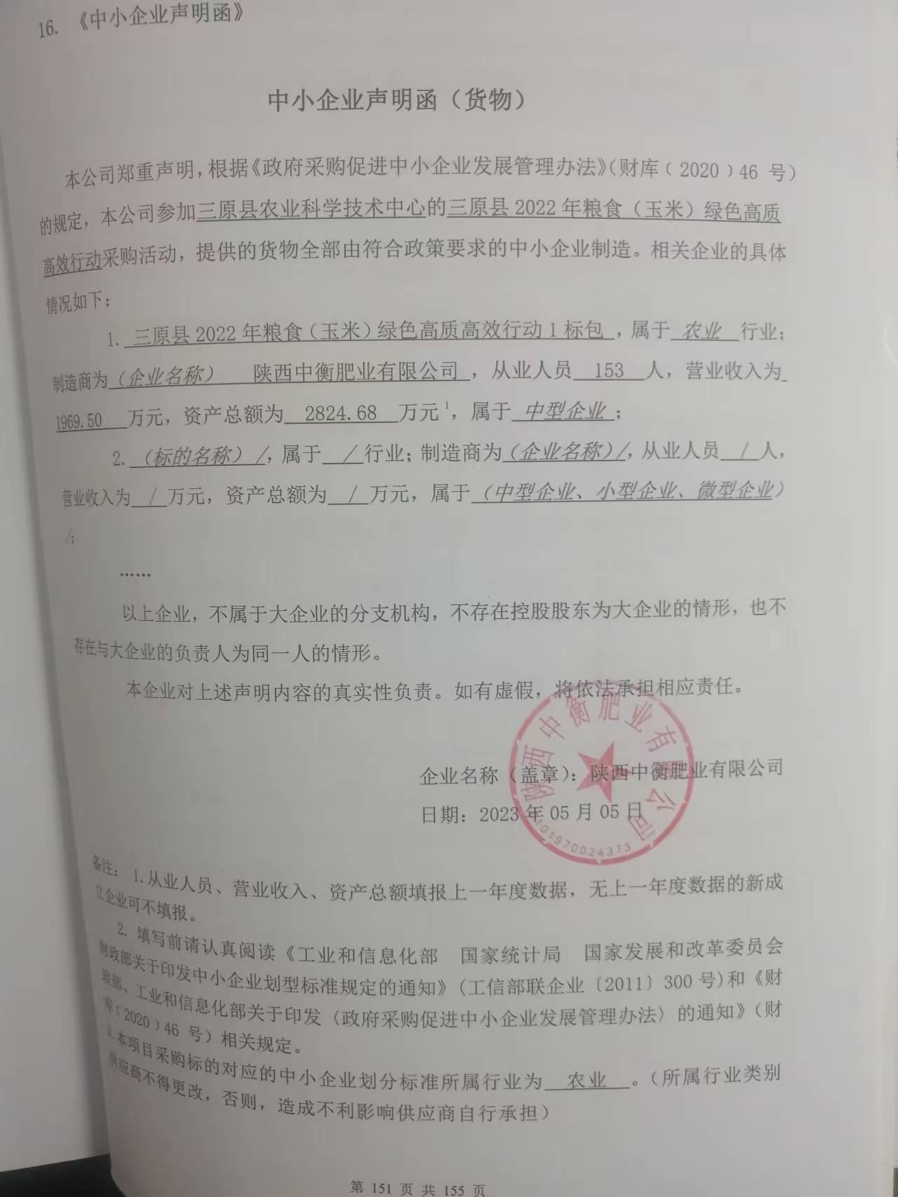 ----------------------------------招标机构发布信息原文:----------------------- 三原县农业科学技术中心三原县2022年粮食(玉米)绿色高质高效行动中标(成交)明细.pdf 中小企业声明函(肥料).jpg 三原县2022年粮食(玉米)绿色高质高效行动(定稿).doc 十一、其他事项: ------------------------------------招标信息结束---------------------------- 标签: 中标 高效 科学技术 玉米 粮食 农业 公告 上一篇: 2023年5月9日山东省葡萄研究院科研仪器设备采购(一)项目中标(成交)公告 最新5000条招标信息列表: 滚动招标 |
